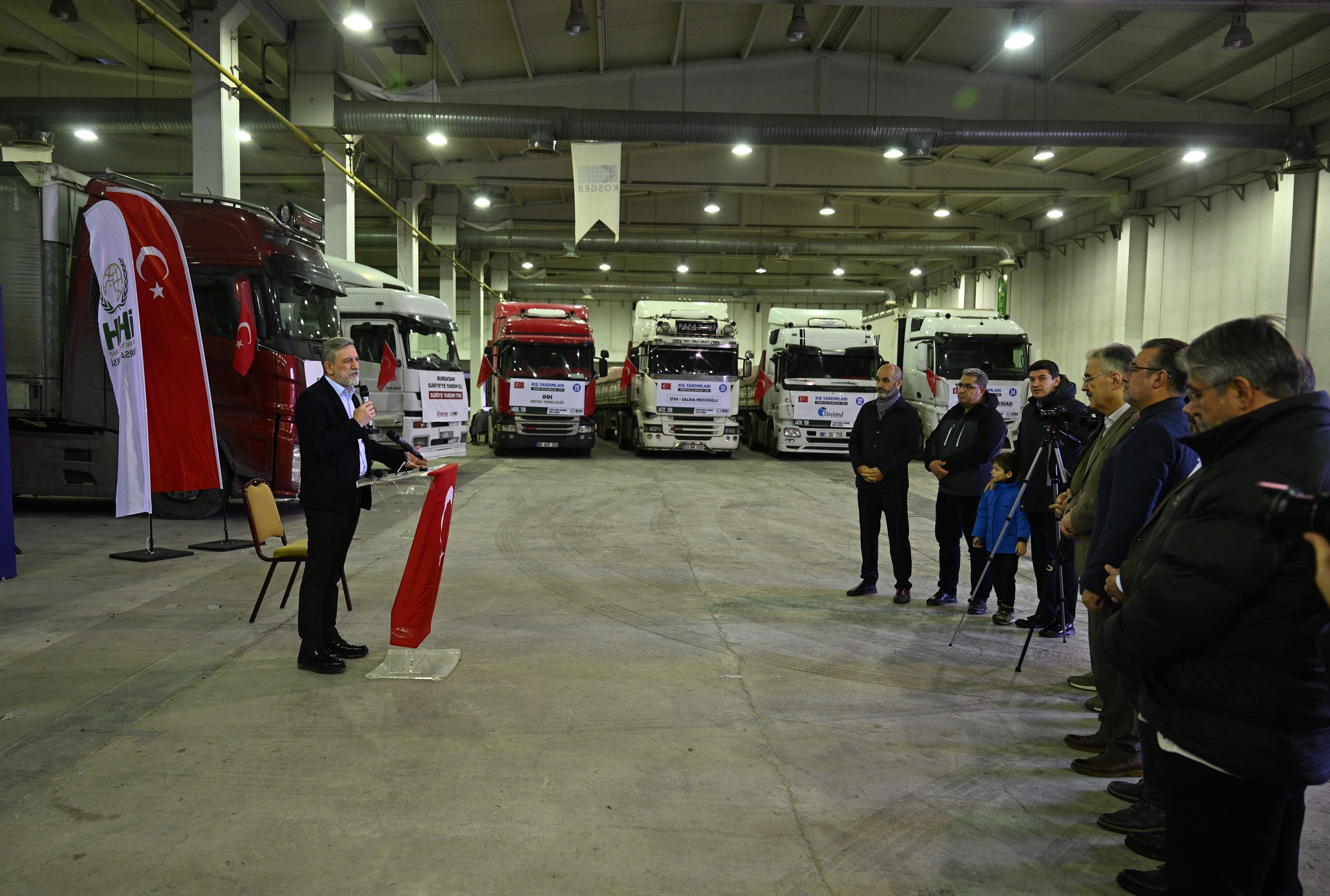 Bursa Ticaret ve Sanayi Odası (BTSO), İHH İnsani Yardım Vakfı Bursa Şubesi ve Bebe Çocuk Konfeksiyon Sektörü Sanayici ve İşadamları Derneği (BEKSİAD) öncülüğünde, hayırseverlerin destekleri ile hazırlanan insani yardım malzemesi taşıyan 24 tır Suriye’ye uğurlandı.