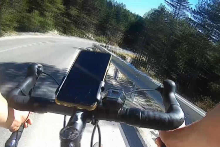 Bursa'da antrenman yapan bisikletçi Uludağ'dan inerken virajı alamayınca bariyerlere girdi. Ölümden dönen bisikletçinin o anları aksiyon kamerasıyla saniye saniye kaydedildi.