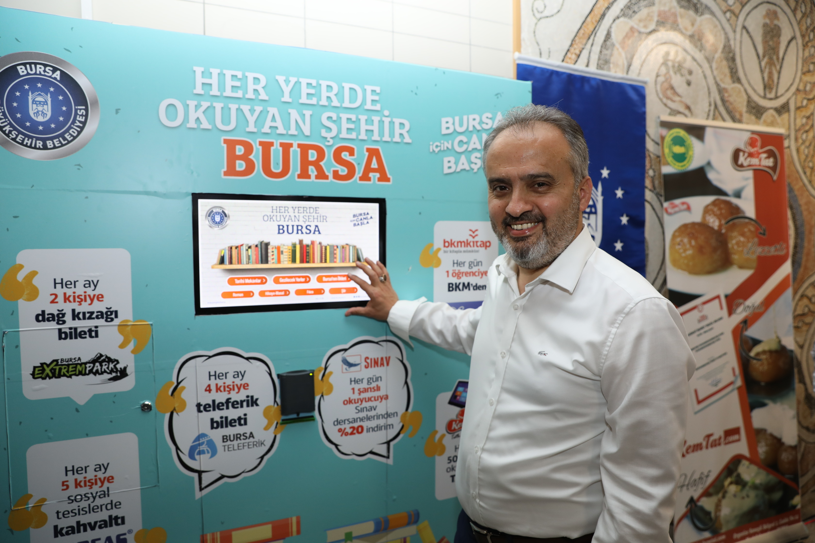 Bursa’da ulaşımdan altyapıya kadar şehrin birçok noktasında çalışmalarını sürdüren Bursa Büyükşehir Belediyesi, toplu ulaşımın adeta bel kemiği olan Bursaray’ı kullananların Bursa temalı okuma kartlarıyla bilgilendirilmesi ve okuma oranlarının arttırılması amacıyla ‘Her yerde okuyan Bursa’ projesini hayata geçirdi. Arabayatağı, Şehreküstü, Osmangazi, Organize Sanayi ve Üniversite istasyonlarına yerleştirilen okuma kiosklarıyla Bursa’nın tarihi mekânları, gezilecek yerler, Bursa’nın ilkleri, roman, hikâye-masal, fıkra ve şiir gibi konularda bilgiye ulaşacak olan Bursalılar, aynı zamanda farklı hediyeler de kazanma fırsatı bulacak. Proje kapsamında her ay 2 kişiye Extrem Park’ta dağ kızağı bileti, her ay 4 kişiye Teleferik bileti, her ay 5 kişiye Burfaş sosyal tesislerinde kahvaltı, her gün 1 okuyucuya Sınav Dershaneleri’nden yüzde 20 indirim, her gün 1 öğrenciye BKM’de 50 TL hediye çeki ve her ay 50 bininci okuyucuya Kemtat’tan tablet hediye edilecek.