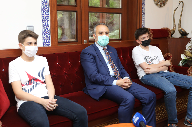 LGS sınavında 500 tam puan alma başarısı göstererek İstanbul Erkek Lisesi’ni tercih eden Ömer Genç, Eren Gökkaya, Konuralp Yüce, Nilüfer İMKB Fen Lisesi’ni seçen Selim Serhan Türkmen ve Galatasaray Lisesi’ni kazanan Eren Bartu Engin ile Hasan Can Emirli, aileleriyle birlikte Büyükşehir belediye Başkanı Alinur Aktaş’ı ziyaret etti.