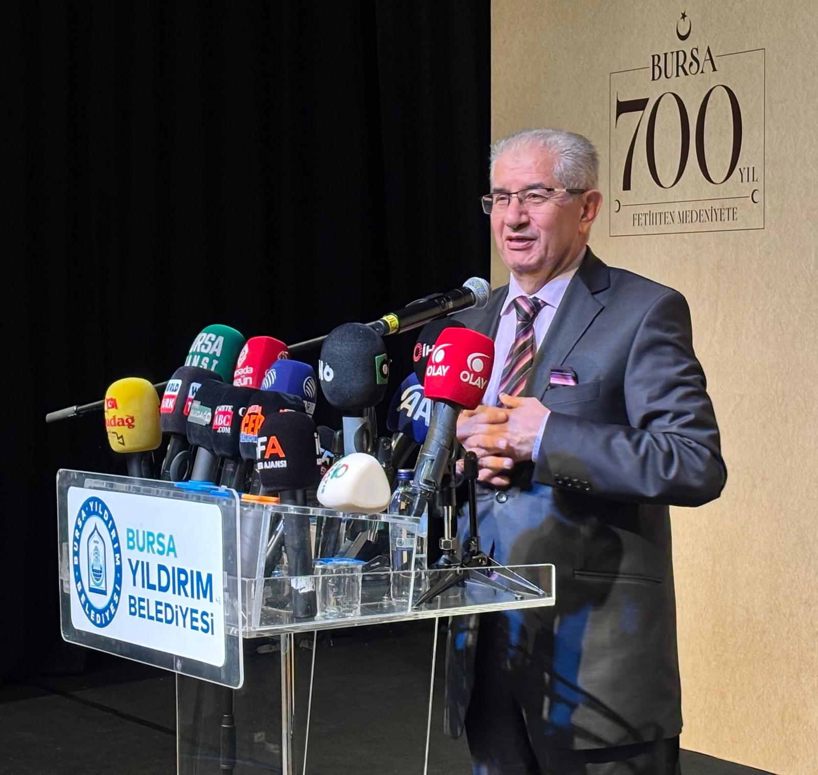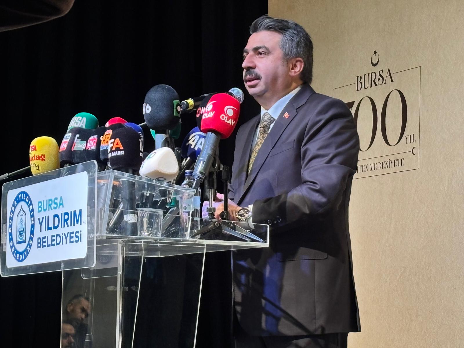"Bu aziz şehrin kalbinde yer alan Yıldırım ise bu medeniyet tasavvurunun en önemli merkezlerinden biridir. Yıldırım Bayezid Han’ın adıyla anılan bu güzel topraklar; külliyeleriyle, darüşşifasıyla, ilim yuvalarıyla önemli bir medeniyet merkezidir. Ecdadımız Bursa’yı fethederken sadece surları aşmadı, gönülleri de kazandı. Çünkü onlar için fetih sadece toprak almak değil, ihya etmekti; hükmetmek değil, adaletle yaşatmaktı. Bugün bize düşen görev ise bu büyük mirası yalnızca anmak değil; anlamak, yaşatmak ve yarınlara taşımaktır. Çünkü biliyoruz ki mazisiyle bağı zayıf olanın istikbali de zayıf olur. Köklerinden kopan bir şehir, ruhunu da kaybeder. İşte bu şuurla, Yıldırım Belediyesi olarak Bursa’nın fethinin 700. yılında 'Beylikten Cihan Devletine' şiarıyla düzenlediğimiz bu sempozyum, gayretimizin ilmi zemini niteliğindedir" şeklinde konuştu.