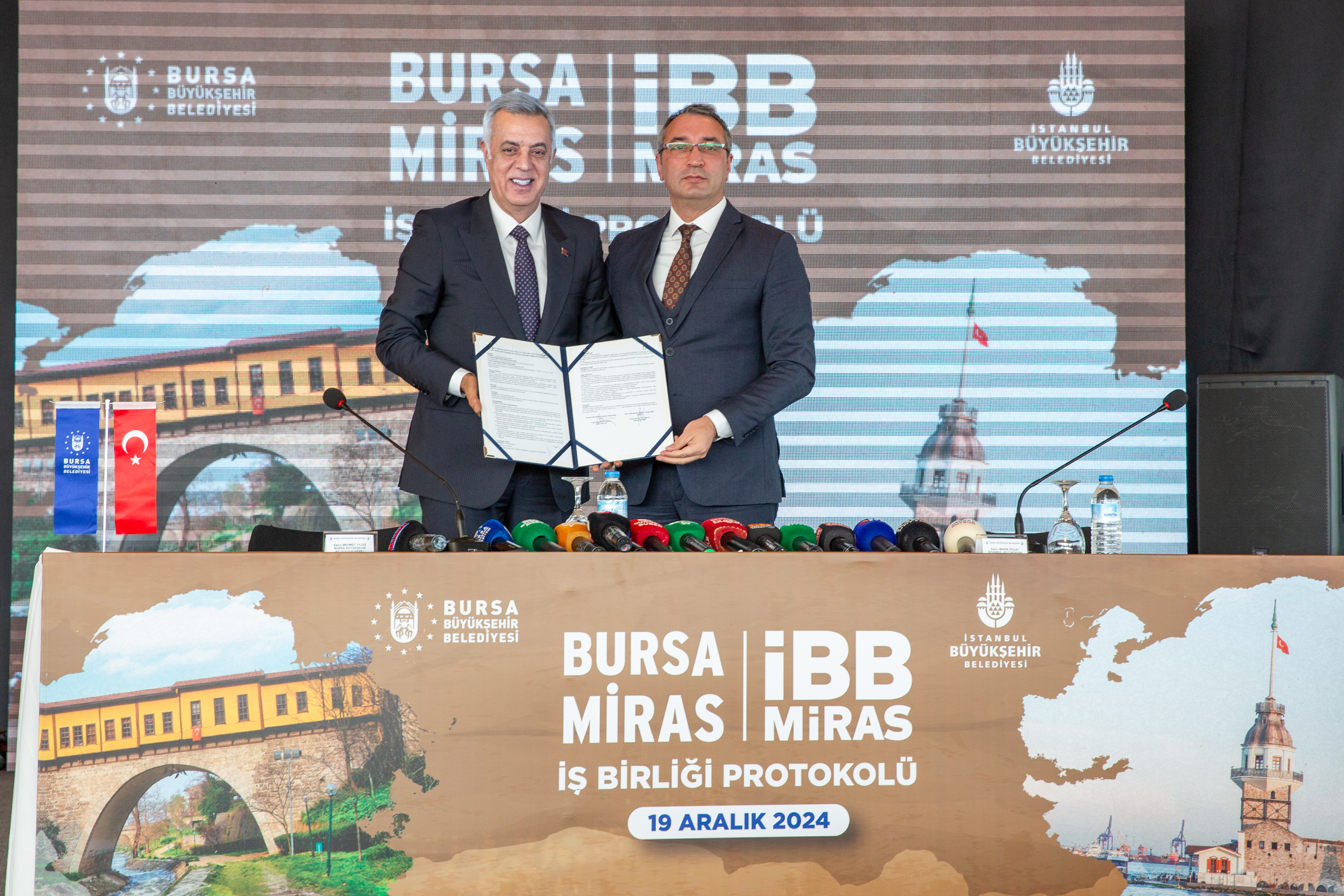 Bursa Büyükşehir Belediyesi ile İstanbul Büyükşehir Belediyesi arasında iki kentin köklü geçmişine sahip çıkmak ve geleceğe aktarmak amacıyla ‘İBB Miras ve Bursa Miras’ iş birliği protokolü imzalandı.