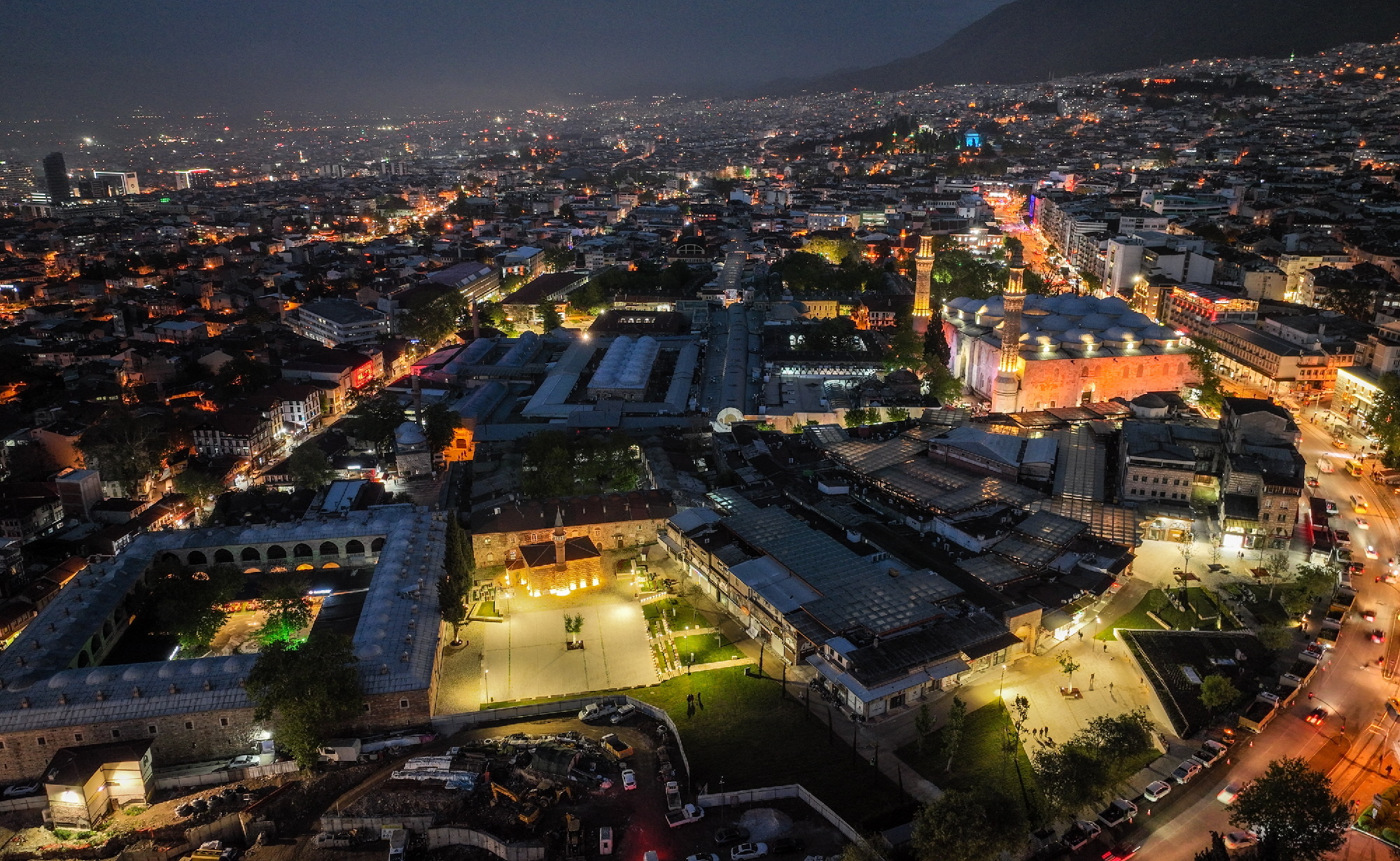Bursa’nın UNESCO Dünya Mirası Listesi’nde yer alan değerlerinden biri olan Tarihi Çarşı ve Hanlar Bölgesi, Büyükşehir Belediyesi’nin yatırımlarıyla gerçek değerine kavuşuyor. 14 han, 1 bedesten, 13 açık çarşı, 7 üstü örtülü çarşı, 11 kapalı çarşı, 4 pazar alanı, 21 camii, 177 sivil mimarlık örneği yapı, 1 okul ve 3 türbe ile tam bir açık hava müzesi olan Tarihi Çarşı ve Hanlar Bölgesi’nde tarihi dönüşüm hızla devam ediyor. Çarşıbaşı Kentsel Tasarım Projesi ile bölgeye 9 bin metrekaresi yeşil alan olmak üzere 20 bin metrekare alan kazandıran Büyükşehir Belediyesi, diğer taraftan Ertuğrulbey Meydanı’ndaki düzenleme çalışmalarını da tamamladı. Etrafı Cumhuriyet Caddesi, Geyve Han, Ticaret Borsası, Fidan Han, Ertuğrul Bey Camii ve Yorgancılar Çarşısı ile çevrili olan Ertuğrulbey Meydanı’nda yaklaşık 3500 metrekare alanı kapsayan çalışma ile bölgenin tarihi dokusu daha da öne çıkarıldı. Projede 2300 yıllık geçmişi bulunun Bitinya dönemine ait mezar odası da cam kaplama ile daha görünür hale getirildi. Bursa, tarihi çarşıyı gezen vatandaşların soluklanacağı ayrıcalıklı bir meydana kavuşmuş oldu.