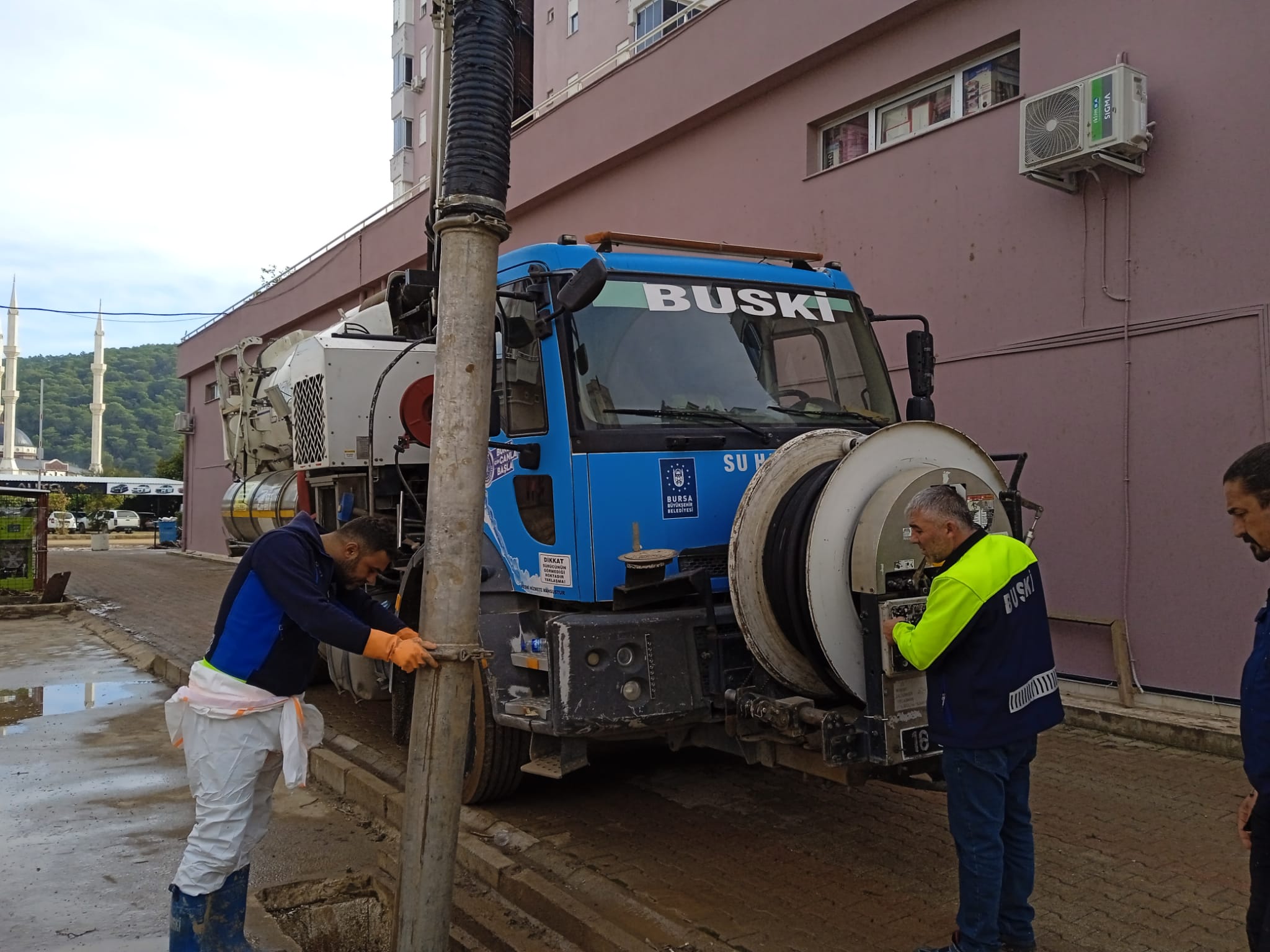 Yangın, sel, deprem ve heyelan gibi doğal afetlerde gerek müdahale ekipleri gerekse de sosyal destekler ile yardıma koşan Bursa Büyükşehir Belediyesi, Marmaris’teki yangınlar ile Artvin ve Kastamonu’daki sel felaketlerinin ardından, şimdi de Antalya’da yaşanan sel felaketi üzerine BUSKİ ekiplerini bölgeye gönderdi. Antalya'nın Kumluca ve Finike ilçelerinde sağanak yağışın ardından 497 araç, 100'ün üzerinde konut, bine yakın işyerinde hasar oluşurken; yaraların sarılması için ülke genelinde başlatılan seferberliğe BUSKİ de katıldı. Kanal temizleme aracı ile Antalya’nın Kumluca ilçesinde çalışmalara başlayan BUSKİ ekipleri, tıkanan kanalları açmanın yanında su tahliye işlemlerine de destek vererek, bölgede hayatın bir an önce normale dönmesi yönünde gayret sarf ediyor.