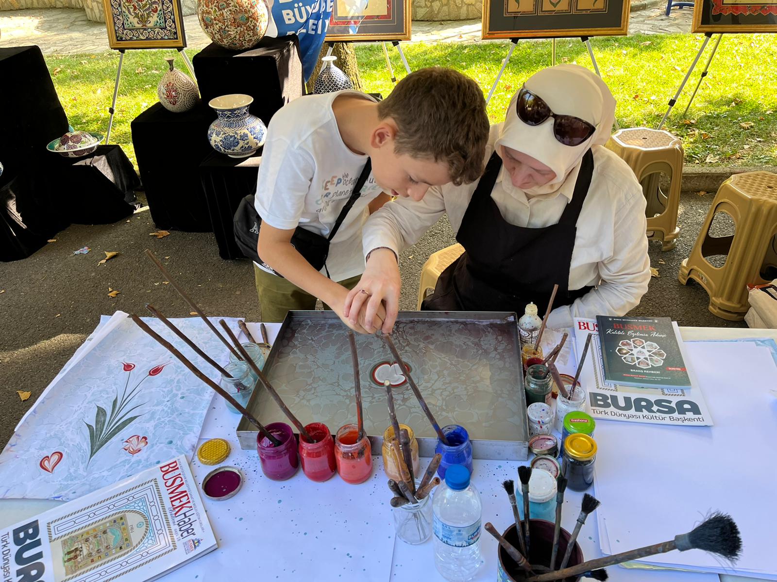 Gerek Bulgaristan gerekse de farklı ülkelerde yaşayan soydaşların yoğun ilgi gösterdiği buluşmada, BUSMEK tarafından Bursa’nın coğrafi işaretli değerleri Bursa İpeği ve İznik Çinisi tanıtıldı. Ziyaretçiler, bir yandan çeşitli etkinliklere katılırken, bir yandan da BUSMEK standında ipekböceği kozalarından tepme mancınık ile ip çekimini ve ipek halı dokuma, ipek kumaş dokuma tezgâhlarındaki canlı performansları yakından izleme fırsatı buldular. Ayrıca Çini sanatını yakından inceleyip, yapım aşamalarında kullanılan malzemeler hakkında bilgi edindiler. Türk İslam Sanatlarından Ebru Sanatı’nın da tanıtıldığı stant yoğun ilgi gördü. Özel koleksiyon olarak hazırlanan Türk Dünyası Kültür Başkenti Bursa temalı sergideki tezhip tablolar da ziyaretçilerden tam not aldı.