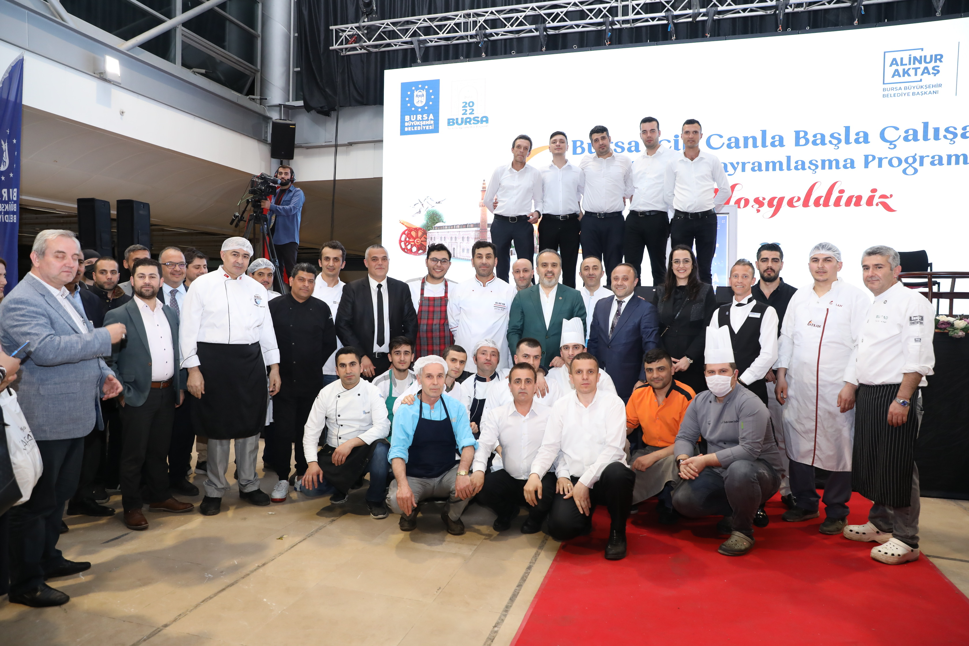 Ramazan ayının manevini iklimini 17 ilçe ve 6 Balkan ülkesinde düzenlediği iftar programlarıyla en güzel şekilde yaşatan Büyükşehir Belediyesi'nin personel iftarı Atatürk Kongre ve Kültür Merkezi fuaye alanında yapıldı. Büyükşehir, BUSKİ ve bağlı şirketlerde görevli 5 bini aşkın personeli bir araya getiren iftara Büyükşehir Belediye Başkanı Alinur Aktaş'ın yanı sıra Yıldırım, Nilüfer, İnegöl, İznik, Keles ve Harmancık belediye başkanları ile meclis üyeleri de katıldı.