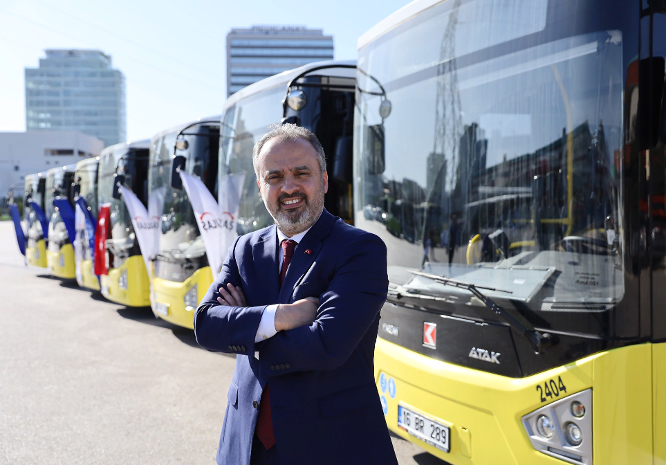 Bursa Büyükşehir Belediye Başkanı Alinur Aktaş, toplu ulaşımın cazip hale gelmesi amacıyla T2 Tramvay hattında inşaatın başlamasından, deniz ulaşımında 39 TL’lik tek fiyat uygulamasına geçilmesine, Bursaray’da bekleme sürelerini 2 dakikaya indirecek sinyalizasyon yatırımından mikrobüs ve BursaKart Mobil projelerine kadar önemli çalışmaları hayata geçirdiklerini söyledi. Yeni yollar, köprülü kavşaklar ve raylı sistem yatırımlarının bir taraftan devam ettiğini hatırlatan Başkan Aktaş, “Ancak sadece bu fiziki yatırımlarla ulaşım sorununu tamamen çözemeyiz. Nüfusumuz her yıl 50-60 bin artarken, trafiğe çıkan araç sayısı da sürekli artıyor. Bizim öncelikle Bursa’da toplu ulaşım kültürünü yaygınlaştırmamız gerekli. Bunun için de toplu ulaşımı halkımız için cazip ve konforlu hale getirmeliyiz. Bu nedenle sürekli yeni hatlar oluşturuyoruz ve toplu ulaşım araçlarını yeniliyoruz. Son 3 yılda aldığımız 88 yeni araçtan sonra şimdi de 85 yeni aracımızla ilgili ihale süreci tamamlandı ve firma ile sözleşme imzaladık. Yeni gelecek araçlarla filomuz 547 araca çıkmış olacak. Bu yeni araçlarla hem yoğunluğu azaltmayı hem de ihtiyaç duyulan hatları beslemeyi planlıyoruz. Bursa’mız için hayırlı olsun” diye konuştu.