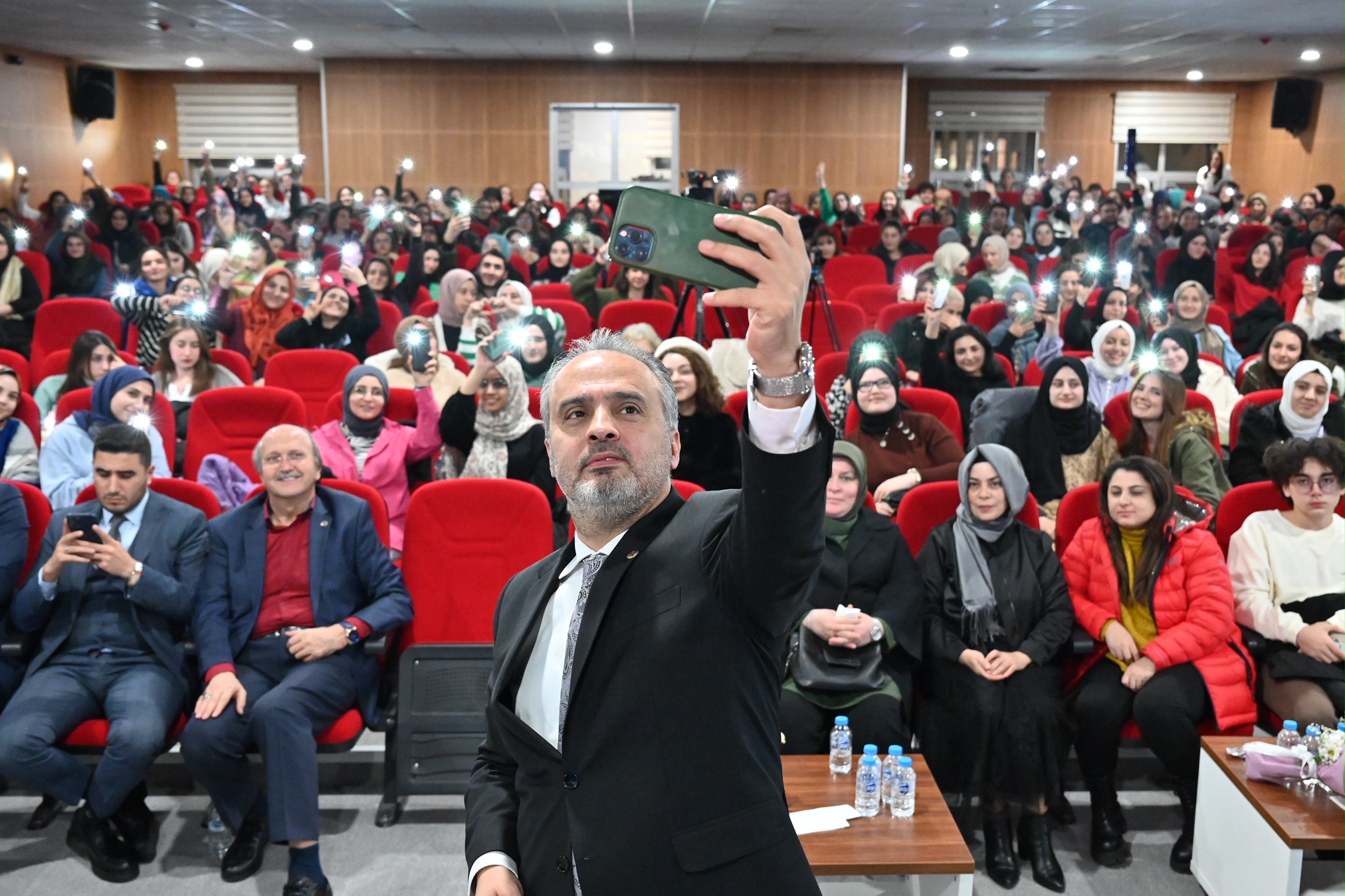 Program öncesi yurtta alan öğrencilere yönelik bir konuşma gerçekleştiren Büyükşehir Belediye Başkanı Alinur Aktaş, kendisinin de 1993 yılında Uludağ Üniversitesi’nden mezunu olduğunu ve 2 yıl yurtta kaldığını söyledi. O zamanın şartları ile bugünün şartları arasında müthiş farklar bulunduğunu, kent merkezinden üniversiteye üç otobüsle gelinebildiğini hatırlatan Başkan Aktaş, “Özellikle sınav dönemlerinde çok stresli bir öğrenciydim. Her vize ve final benim için adeta üniversiteye giriş sınavı gibiydi. Ama öyle ya da böyle bu yıllar geçip gidiyor. Evet, bir şekilde okulu bitireceksiniz ama lütfen yabancı dili ihmal etmeyin. Bu tür sosyal etkinlere katılmak da sizlere değer katacaktır. Unutmayın, bilgi küfenizi sadece bu yıllarda doldurabilirsiniz. Türkiye’nin en güzel illerinden birinde okuyorsunuz. Bursa’da 4 yılını geçirip, Görükle’den başka yeri görmeyenler var. Bursa’yı gezip tanıyın. En önemlisi de ‘üniversiteyi bitirince bir devlet dairesine veya belediyeye gireceğim gibi’ dar kalıplarla kendinizi sınırlamayın. Ufkunuzu geniş tutun. Türkiye, her geçen gelişen ve büyüyen, kalıplarını aşan bir ülke. Dünyanın dört bir yanında Türk şirketleri var. Yani önünüzde çok güzel fırsatlar var” dedi.