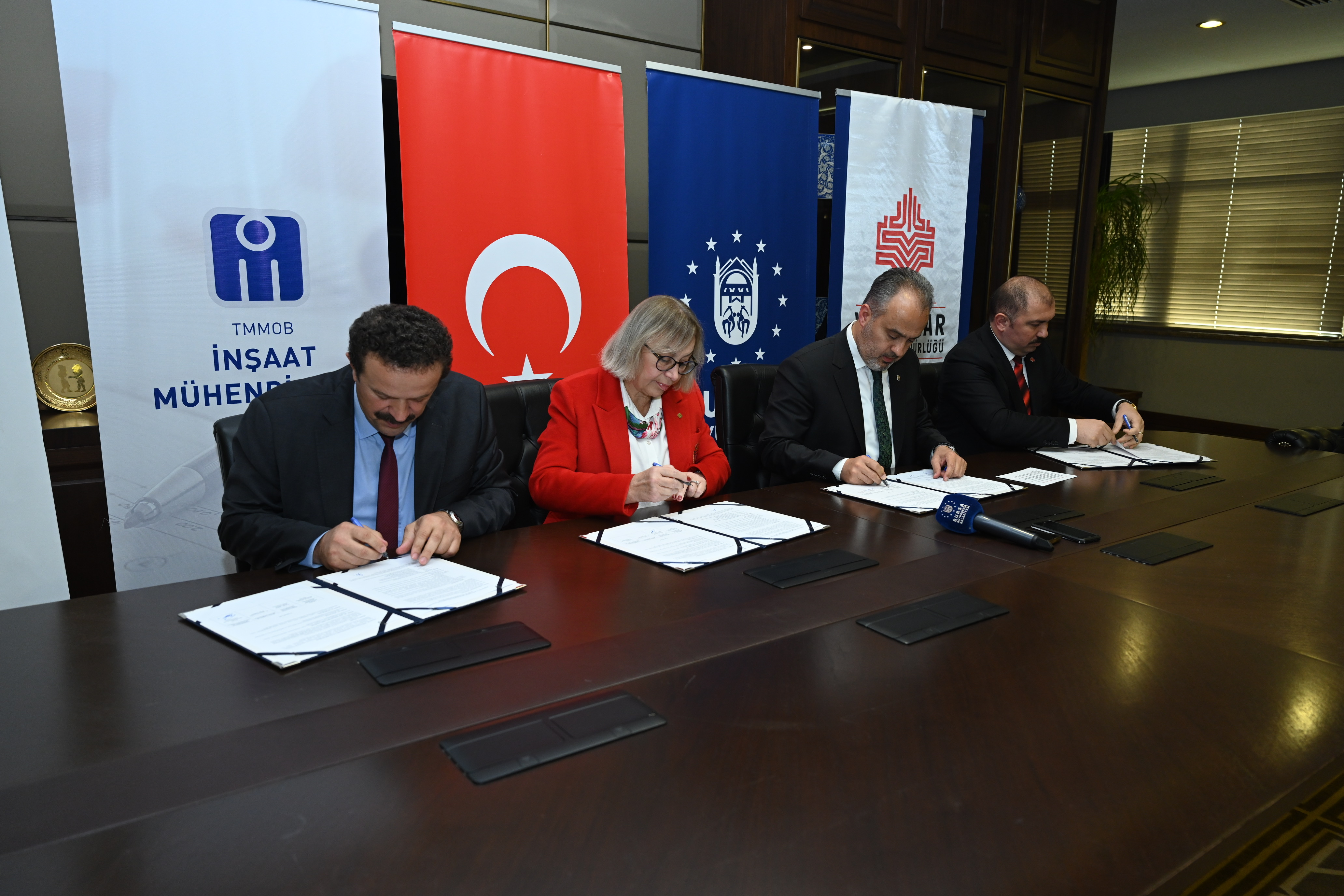 Bursa’nın en önemli kent ziynetinin gelecek yüzyıllarda da varlığını sürdürebilmesi adına hazırlanan protokol Büyükşehir Belediye Başkanı Alinur Aktaş, Uludağ Üniversitesi Rektör Yardımcısı Prof. Dr. Adem Doğangün, Vakıflar Bölge Müdürü Haluk Yıldız ve İnşaat Mühendisleri Odası Başkanı Ülkü Kücükkayalar arasında imzalandı. Bursa’nın her köşesinin adeta değerler hazinesi olduğunu ifade eden Başkan Aktaş, “Bu değerlerimiz, Bursa’mızı ziyaret eden yerli yabancı tüm turistlerin ilgisine mazhar oluyor. Bu değerlerimizden biri de, Bursa’mızın en önemli sembollerinden biri olan Ulu Cami’dir. Bilindiği gibi Ulu Camii, 1. Beyazıd tarafından 1396-1400 yılları arasında yaptırılmış. Bursa’nın en önemli tarihi miraslarından olan Ulu Camii; yirmi kubbeli yapısı ile Türkiye’deki iç cemaat yeri en geniş camidir. Camimiz, 1855 yılı depreminde büyük hasar görmüş ve on sekiz kubbesi çökmüş. Depremden sonra esaslı bir tamir görerek bu önemli tarihi mirasımız günümüze kadar ulaşmış. Hedefimiz 1400 yılında tamamlanan bu eseri güvenle gelecek nesillere aktarmaktır. Protokol kapsamında; Ulu Camii taşıyıcı sisteminin tespitinin yapılıp, 2018 Türk bina deprem yönetmeliğine uygun analizlerinin değerlendirilmesi için gerekli bilgi, belge, akademik ve teknik destek için bir komisyon kurulacak ve çalışmalar bu komisyon marifetiyle yürütülecek. Proje kapsamında jeoloji-jeofizik çalışmaların mali yükümlülüğünü Büyükşehir Belediyesi olarak biz üstleniyoruz. Tabii, vatandaşlarımızın içi rahat olsun; yapılması planlanan analiz çalışmaları, cami içerisinde herhangi bir fiziksel müdahaleye sebep teşkil etmeyecek. Başta da belirttiğim gibi amacımız bu eşsiz tarihi mirasımızın uzun yıllar varlığını devam ettirmesi ve gelecek nesillere aktarılmasıdır” dedi.