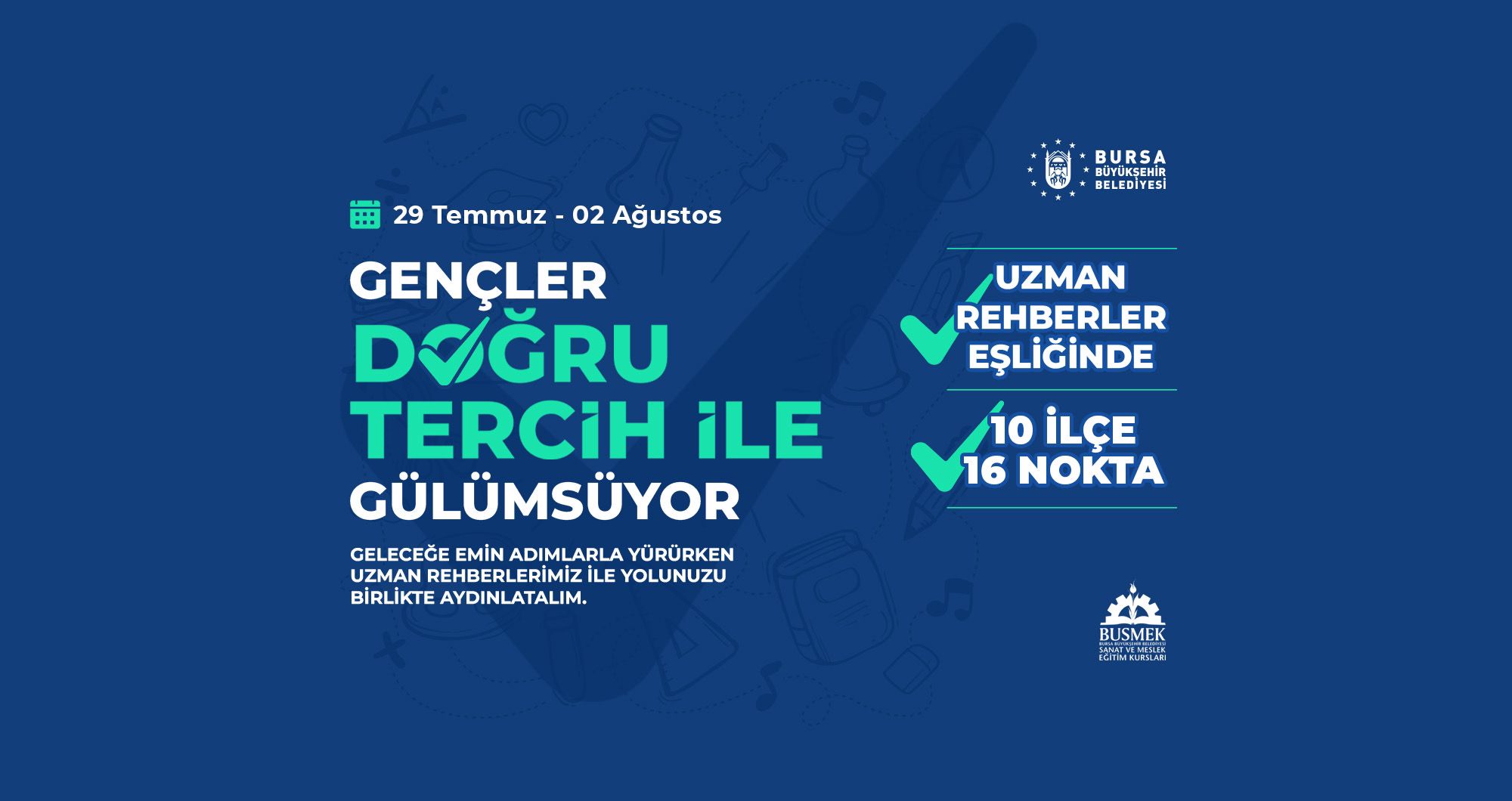 Üniversite Tercih Rehberlik Noktaları kentin farklı noktalarında 29-30-31 Temmuz ve 1-2 Ağustos tarihlerinde hizmet verecek. Sınav sonuçları ve bireysel tercihler değerlendirilerek, en uygun üniversite ve bölümler hakkında gençlere bilgi verilecek.