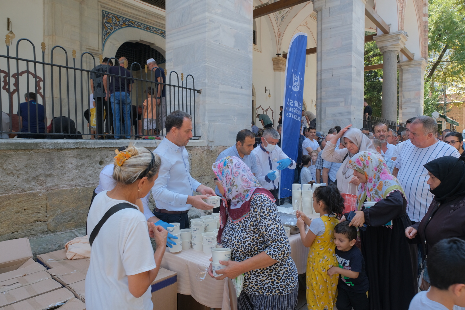 Bursa Büyükşehir Belediyesi, Muharrem ayı münasebetiyle şehrin 6 farklı noktasındaki camilerde 10 bin kişiye aşure ikram etti.