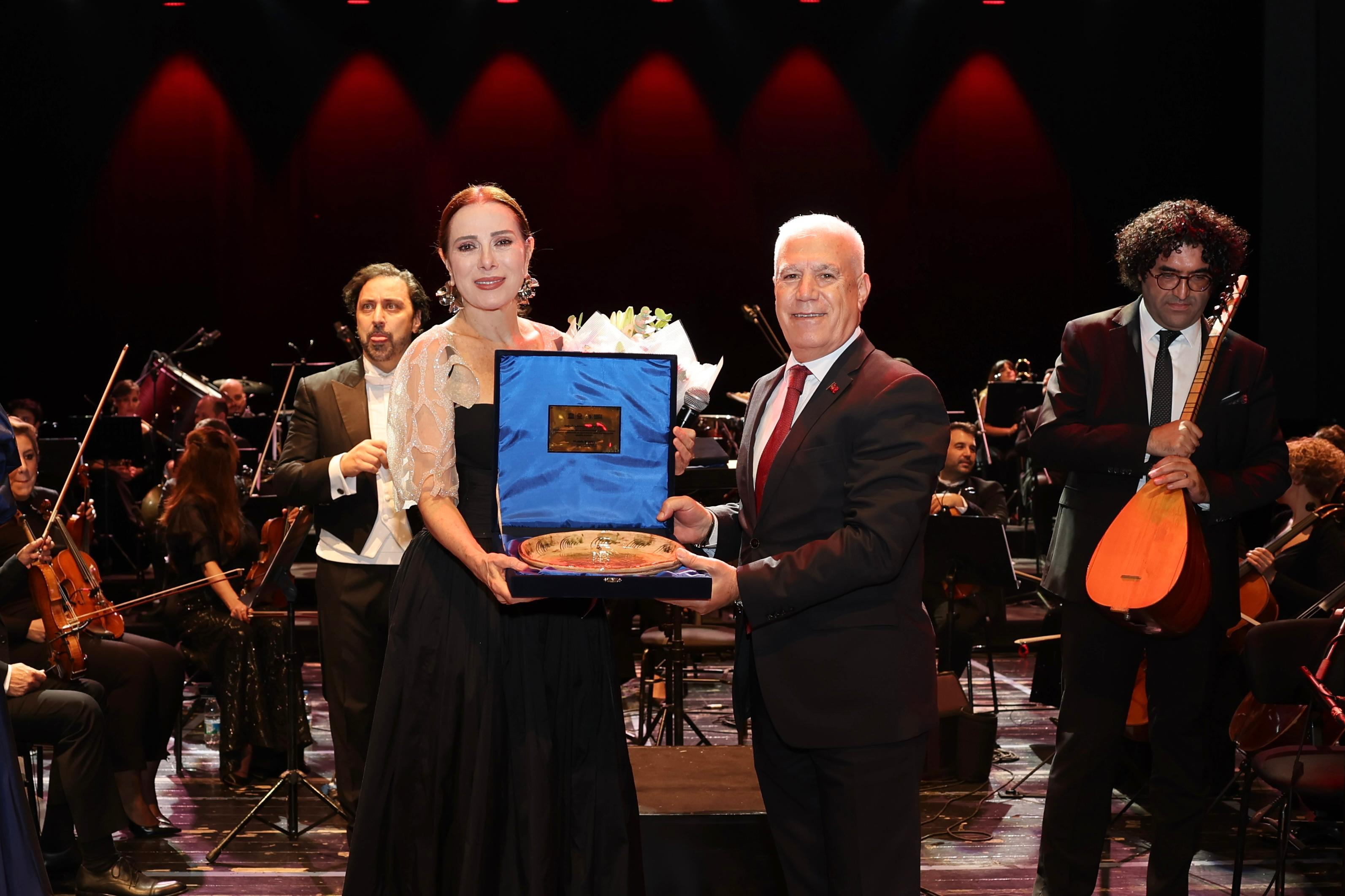 Konserin sonunda Başkan Mustafa Bozbey ve eşi Seden Bozbey sahneye çıkarak, bu özel günün anısına sanatçılara çiçek ve İznik çinisi tablo armağan etti.