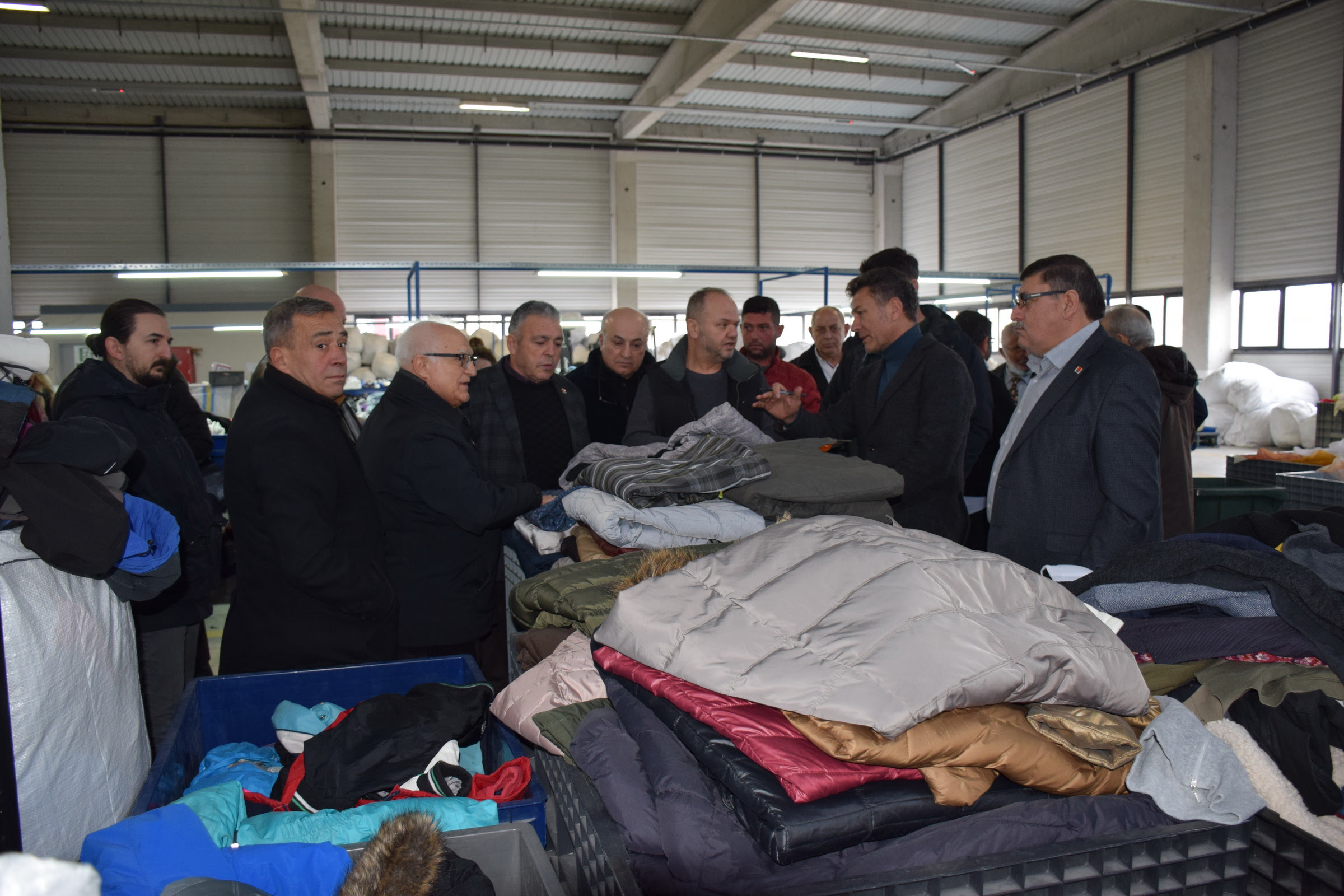 CHP Bursa İl Başkanı Turgut Özkan, Mustafakemalpaşa Organize Sanayi Bölgesi'nde kurulan ikinci el giysi ayrıştırma tesisi Torun Tekstil İntro AŞ'yi ziyaret ederek proje yöneticisi Bursa Engelliler Fe