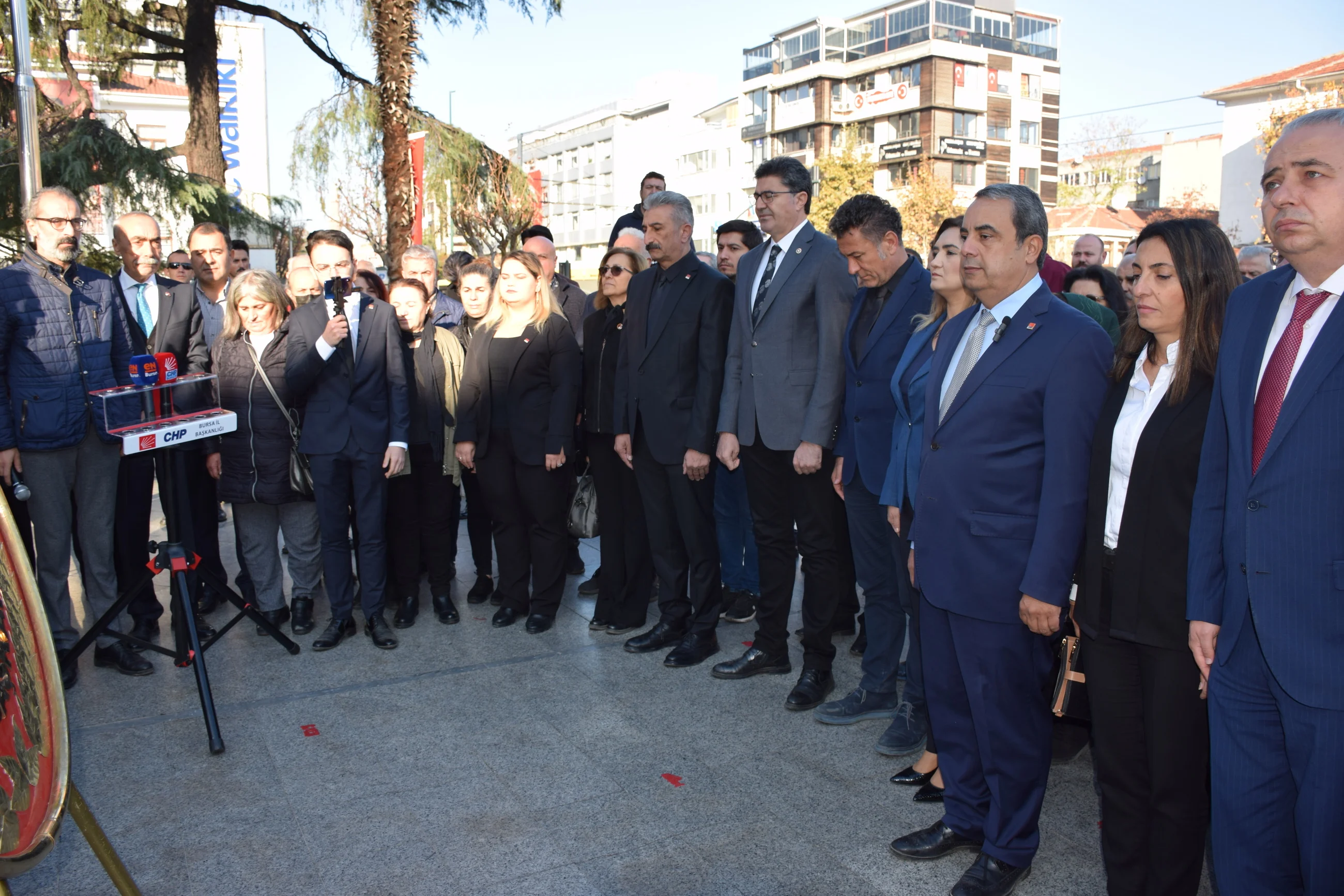 CHP Balıkesir Milletvekili Ensar Aytekin, İzmir Milletvekili Sevda Erdan Kılıç, Manisa Milletvekili Ahmet Vehbi Bakırlıoğlu, Bursa Milletvekilleri Nurhayat Altaca Kayışoğlu, Erkan Aydın ve Orhan Sarıbal ile Osmangazi İlçe Başkanı Metin Yılmaz, Yıldırım İlçe Başkanı Nihat Yeşiltaş, İl Kadın Kolları Başkanı Aysel Okumuş'un da hazır bulunduğu törende ilk olarak Atatürk Anıtı'na çelenk sunumu gerçekleştirildi. Saygı duruşu ve İstiklal Marşı'nın okunmasının ardından konuşan CHP Bursa İl Başkanı İsmet Karaca, Türk Ulusu'nun hafızalarımızdan silinmeyen en acı günde bulunduğumuzu belirterek şunları söyledi: