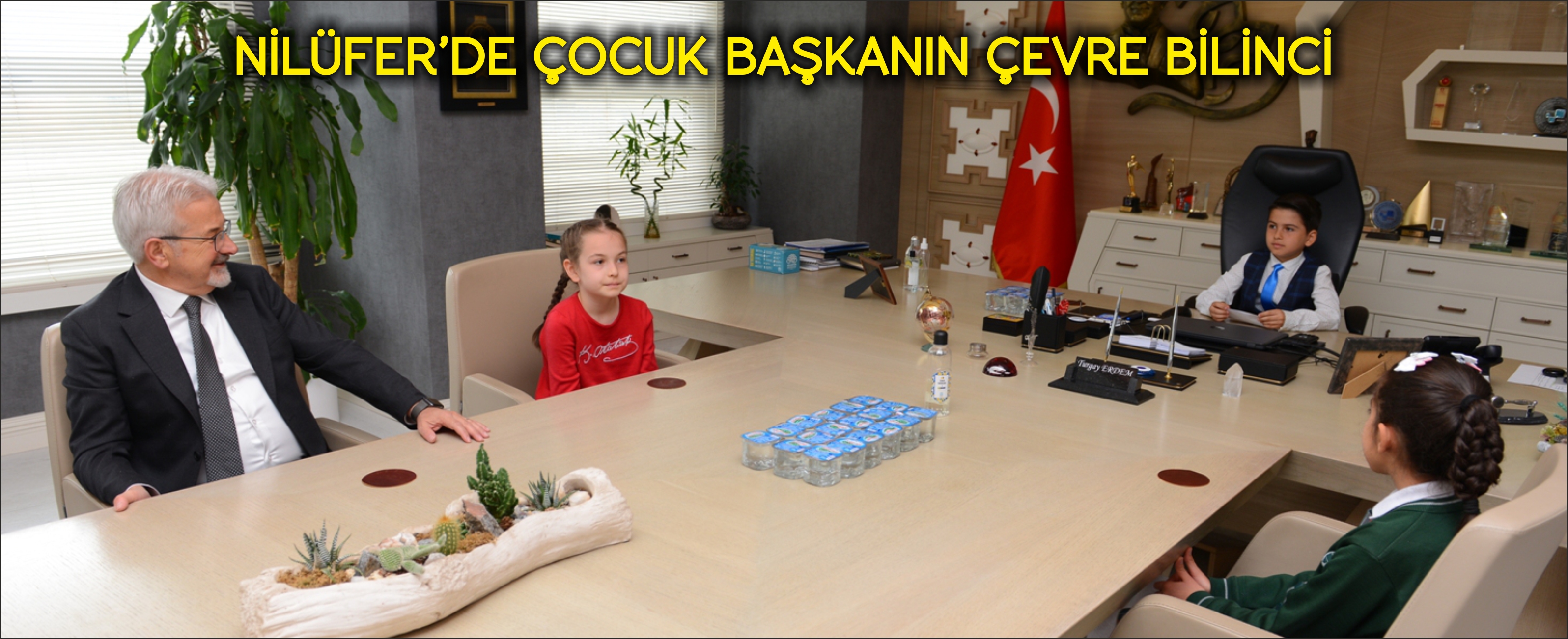 Nilüfer Belediye Başkanı Turgay Erdem, 23 Nisan Ulusal Egemenlik ve Çocuk Bayramı nedeniyle bir günlüğüne de olsa koltuğunu Alara İlkokula öğrencisi Görkem Dinç’e devretti. Başkan koltuğuna oturan 4. sınıf öğrencisi Görkem’in talimatlarının büyük kısmı çevrenin korunmasına yönelik oldu.