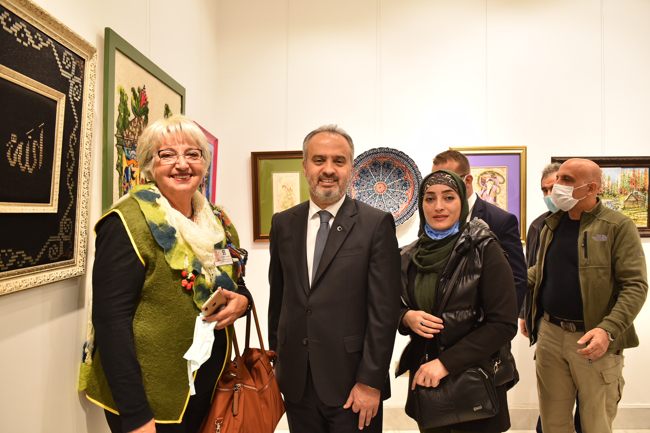 Kurdele kesiminin ardından Vali Yakup Canbolat ve Büyükşehir Belediye Başkanı Alinur Aktaş, sanatseverlerle birlikte sergiyi gezdi. Sanat Köprüleri Kültür Sanat Merkezi Başkanı Ufuk Soydemirgil de günün anısına Vali Canbolat ve Başkan Aktaş’a çini tabak hediye etti.