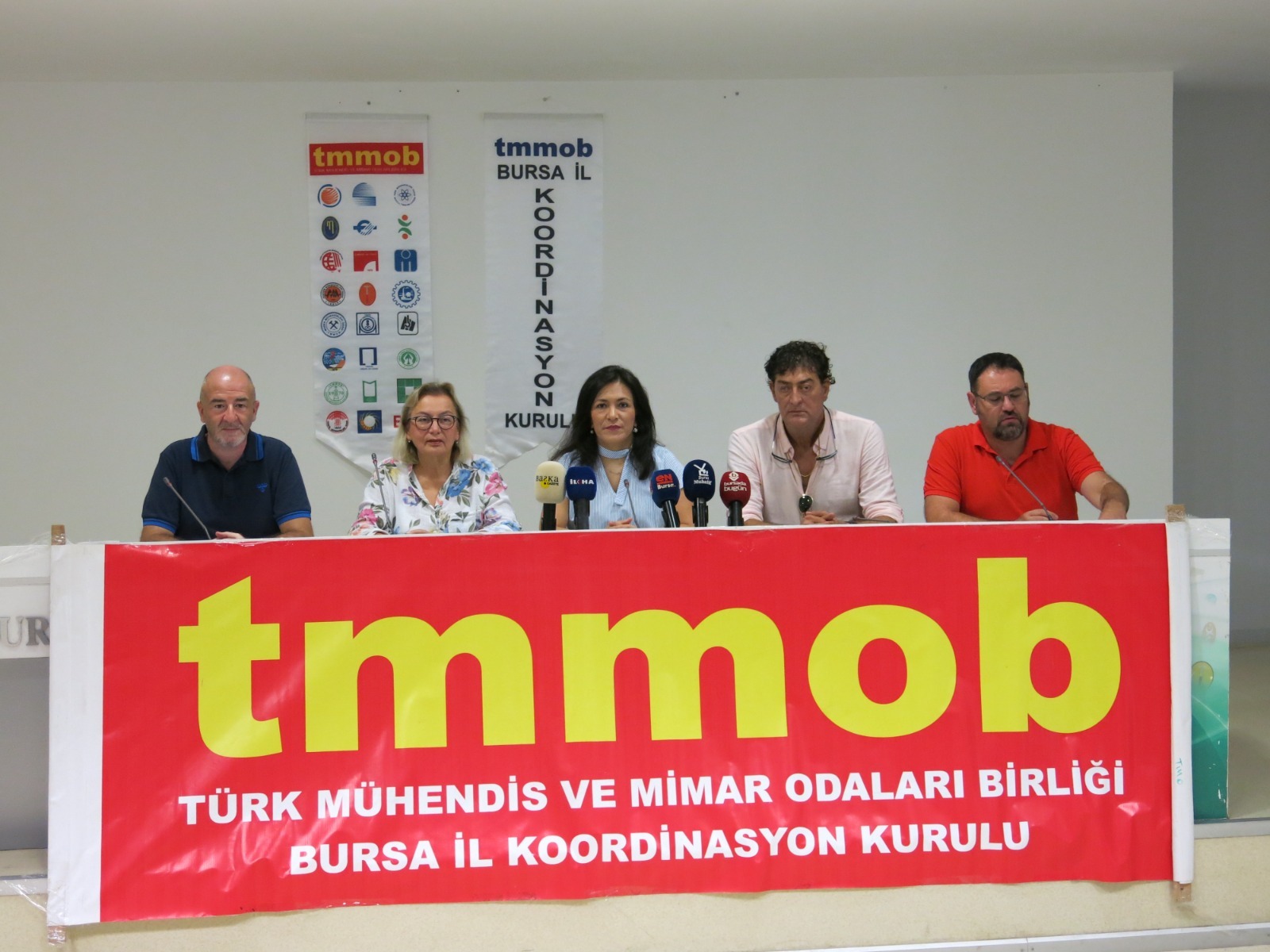 TMMOB Bursa İKK Sekreteri ve Mimarlar Odası Bursa Şubesi Başkanı Şirin Rodoplu Şimşek’in okuduğu basın açıklaması şöyle: