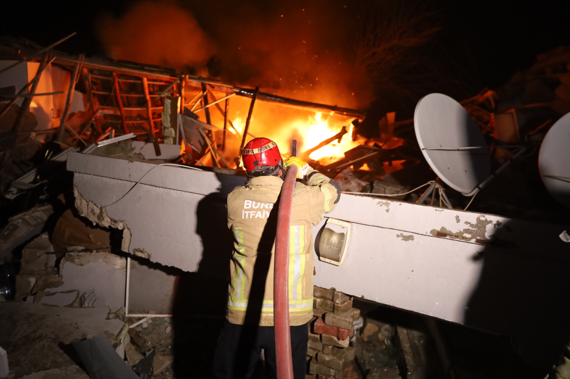 Enkaza ilk müdahaleyi yapan AFAD ekipleri, binadan bir kişinin cansız bedenini çıkardı. AFAD ekiplerinin çalışmalarını tamamlandığı sırada bir anda binada yangın çıktı. Olay yerinde hazır bulunan Bursa itfaiyesi, alevlerle aydınlanan gecede yangına anında müdahale etti. Yangın, çevredeki binalara sıçramadan söndürüldü.