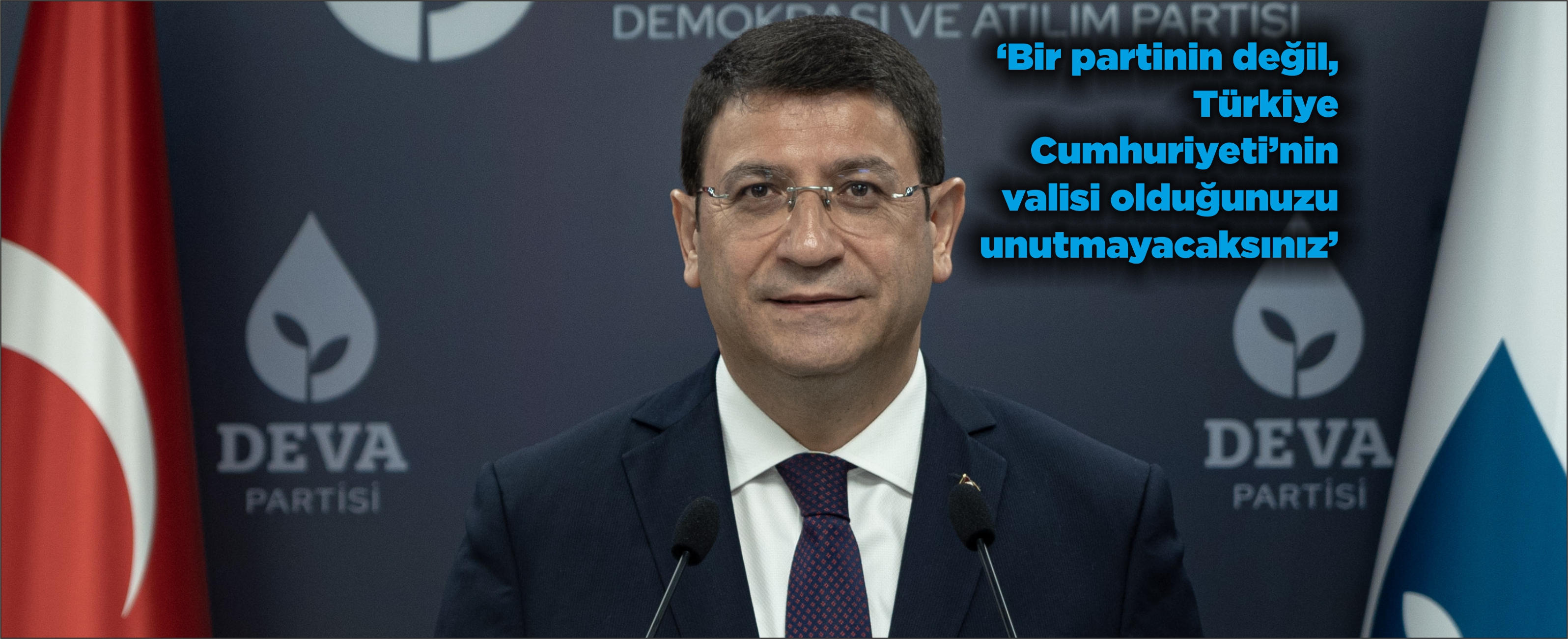 “Sayın Vali, öncelikle basın bildirisinde DEVA Partisi’nden bahsederken ‘bir siyasi parti’ olarak ifade etmenizi kınıyoruz. Resmî bir açıklamada muhatabınız DEVA Partisi. Demokrasi ve Atılım Partisi diyeceksiniz. Devletin valisinin herkese eşit mesafede durması gerektiğini bileceksiniz. Bir partinin valisi değil, kökü maziye dayanan bir medeniyetin bugünkü temsilcisi olan Türkiye Cumhuriyeti’nin valisi olduğunuzu unutmayacaksınız.”