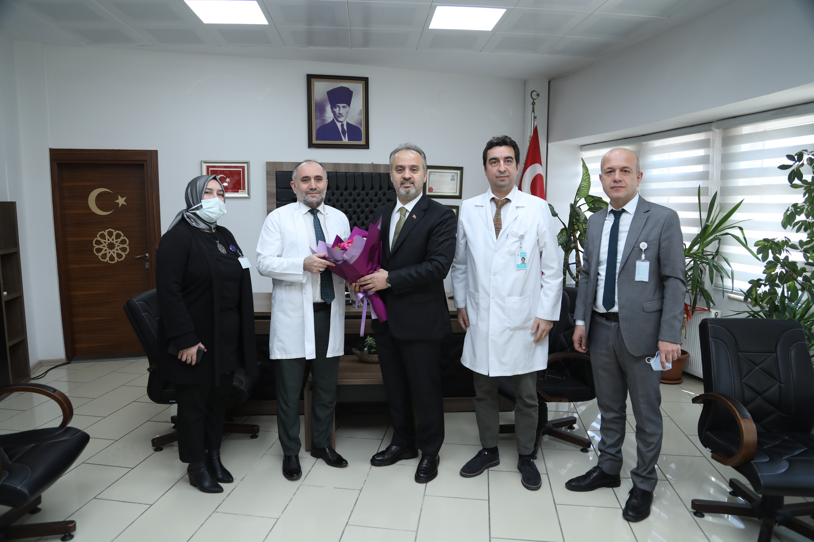Bursa Büyükşehir Belediye Başkanı Alinur Aktaş, Ali Osman Sönmez Onkoloji Hastanesi’ni ziyaret ederek, doktorların 14 Mart Tıp Bayramı’nı kutladı.