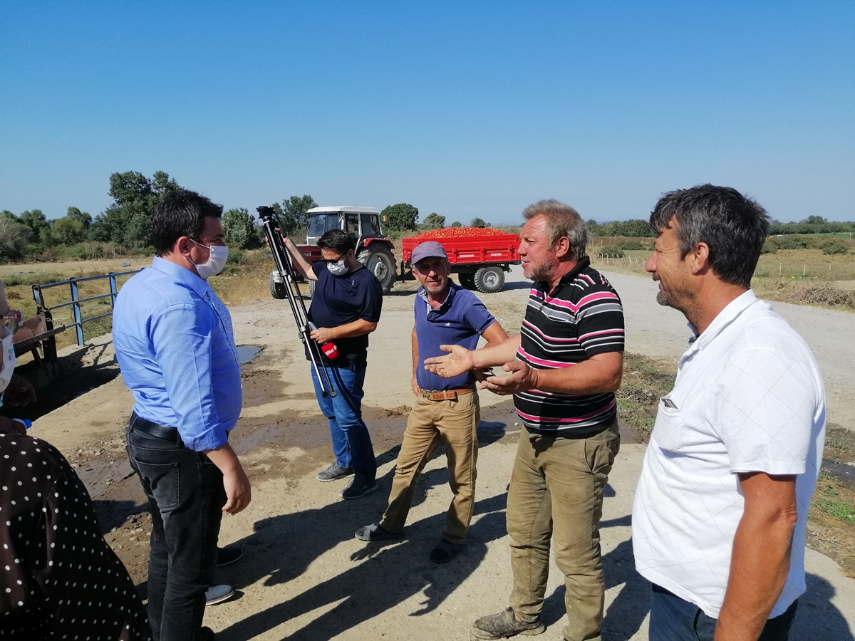 CHP Bursa Milletvekili Erkan Aydın, CHP Mustafakemalpaşa İlçe Başkanı Serda Tandoğan Kuru ve yönetimiyle birlikte Ayaz ve Yavelli Köylerinde domates üreticilerinin sorunlarını dinledi. Maliyeti 51 kuruş olan salçalık domatesin kilosunu 33 kuruştan satmak zorunda kaldıklarını söyleyen üretici dertli. Üreticinin sıkıntılarını dinleyen Erkan Aydın’a köylü, “Zaten maliyetlerimiz çok fazla birde bu sene ürünlerimiz para etmedi. Salça fabrikaları da fiyatları maliyetlerimizin çok altında tuttu” diyerek dert yandı.