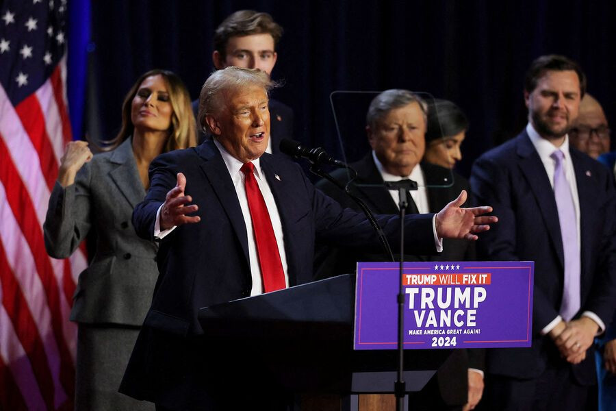 ABD Başkanı Adayı Donald Trump, önde giden seçim sonuçları hakkında destekçilerine hitap ederken, zaferini resmen duyurdu. Trump, destekçilerine olan minnettarlığını ifade ederek, "Amerikan halkına 47. ve 45. başkanınız olarak seçilmenin verdiği olağanüstü onur için teşekkür etmek istiyorum" dedi. Bu sözleri, Trump'ın seçim kampanyasının güçlü bir kapanışını simgeliyor.