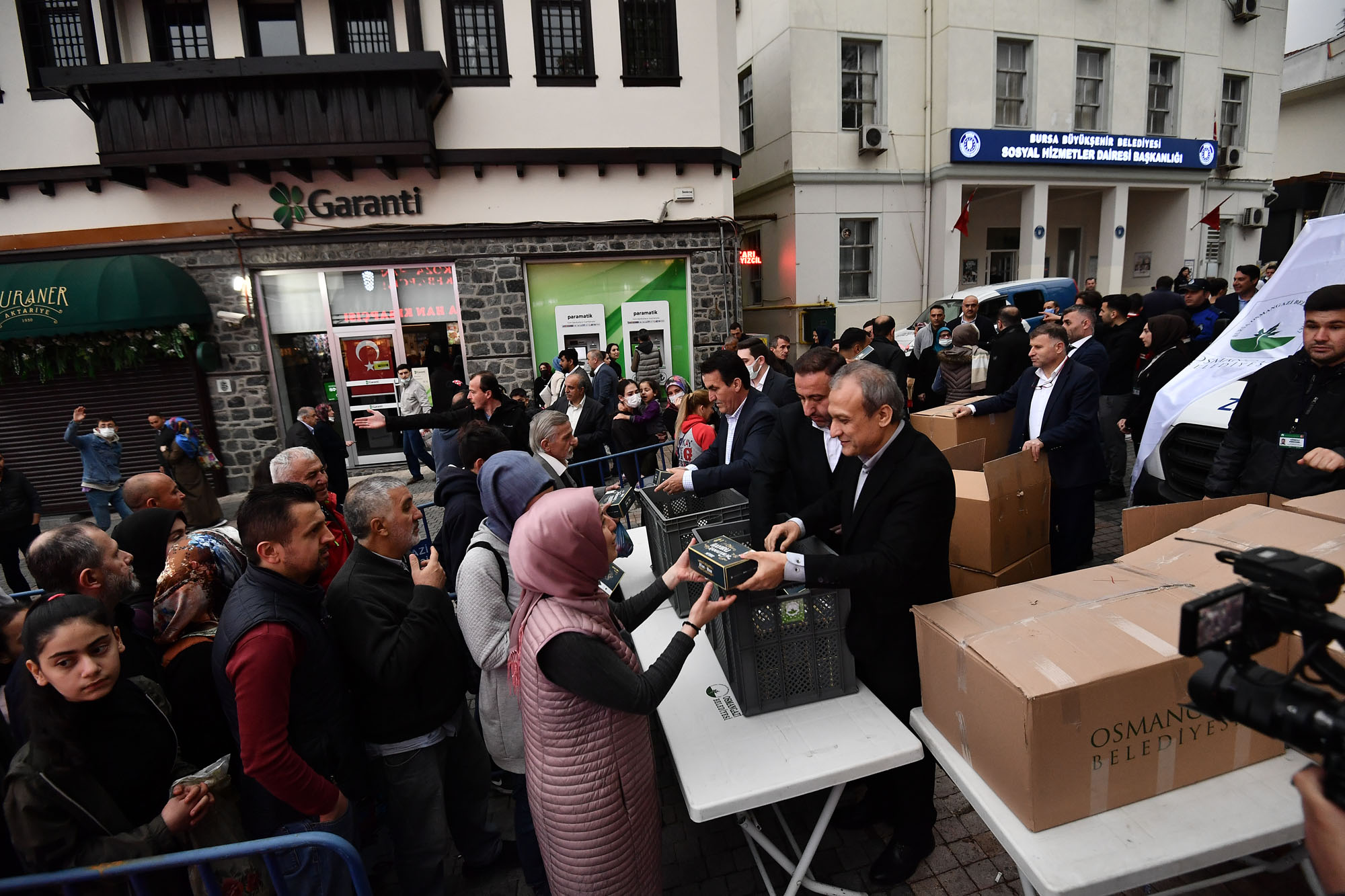 Osmangazi Belediye Başkanı Mustafa Dündar, bayram alışverişine çıkan vatandaşlara ve çarşı esnafına oruçlarını açabilmeleri için iftariyelik dağıttı.