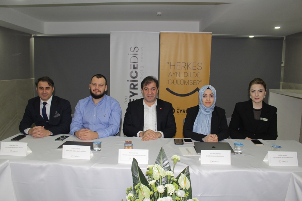Bursa’nın ilk ve tek A grubu ağız ve diş sağlığı merkezi olan Eyrice Ağız ve Diş Sağlığı Merkezi’nin (ADSM) hizmete girmesinin birinci yıldönümü nedeniyle bir basın toplantısı düzenlendi. Toplantıda Eyrice Dental Grup faaliyetleri hakkında da bilgi veren Yönetim Kurulu Başkanı Türkay Eyrice, “Toplam 4 şirketten oluşan bir grubuz. 25 yıl önce diş protez üretimi ile başlayan bir yapımız var. Türkiye’deki yaklaşık 100 ağız ve diş sağlığı hastanesine diş protezi üretiyoruz. Halen Türkiye ve Avrupa’nın diş protezi üreten en büyük tesisi durumundayız. Üretim birimimizde 250, hizmet verdiğimiz hastanelerde de 200 olmak üzere protez bölümümüzde toplam 450 çalışanımız bulunuyor. Çağ Diş Laboratuvarımız İstanbul’da hizmet veriyor. Eyrice Medical şirketimiz Grubumuzun malzeme tedarikini sağlıyor. Sektördeki deneyimimiz ile de 1 yıl önce Eyrice Ağız ve Diş Sağlığı Merkezi’miz hizmete girdi. Eyrice ADSM, bütün diş hekimliğindeki sekiz ana bilim dalının uzmanlık alanlarını bünyesinde barındıran bir yapı haline geldi” diye konuştu.