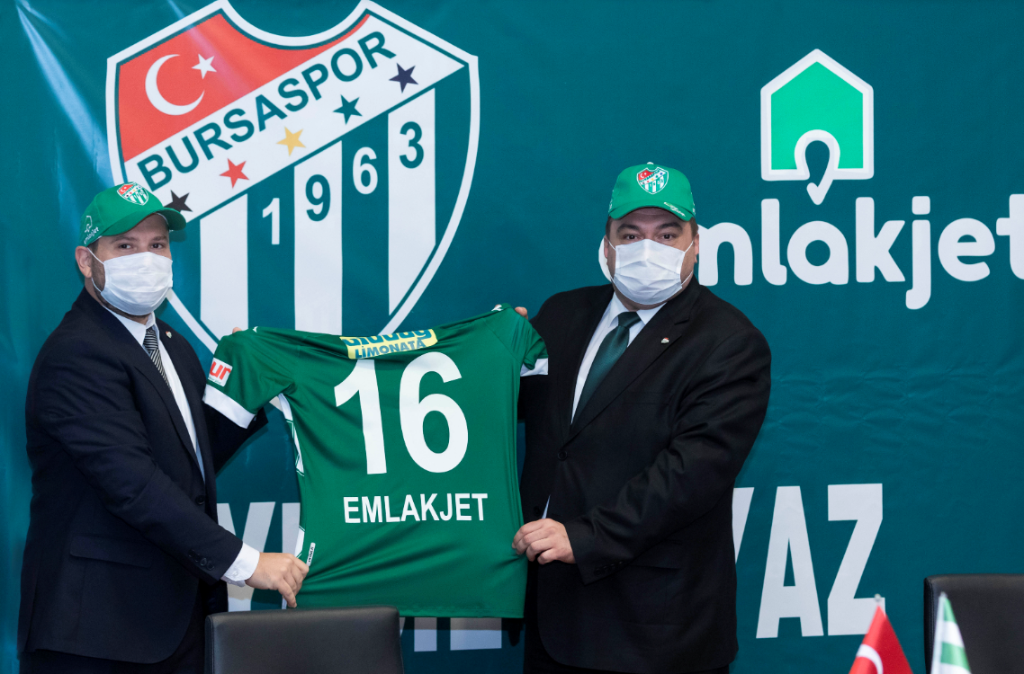 Bursaspor Yönetim Kurulu Üyesi Mesut Günal ve Emlakjet CEO’su Tolga İdikat tarafından imzalanan sponsorluk anlaşması, şapkada logo kullanım hakkının yanı sıra Timsah Arena ve Özlüce tesislerinde de çeşitli tanıtım haklarını içeriyor.