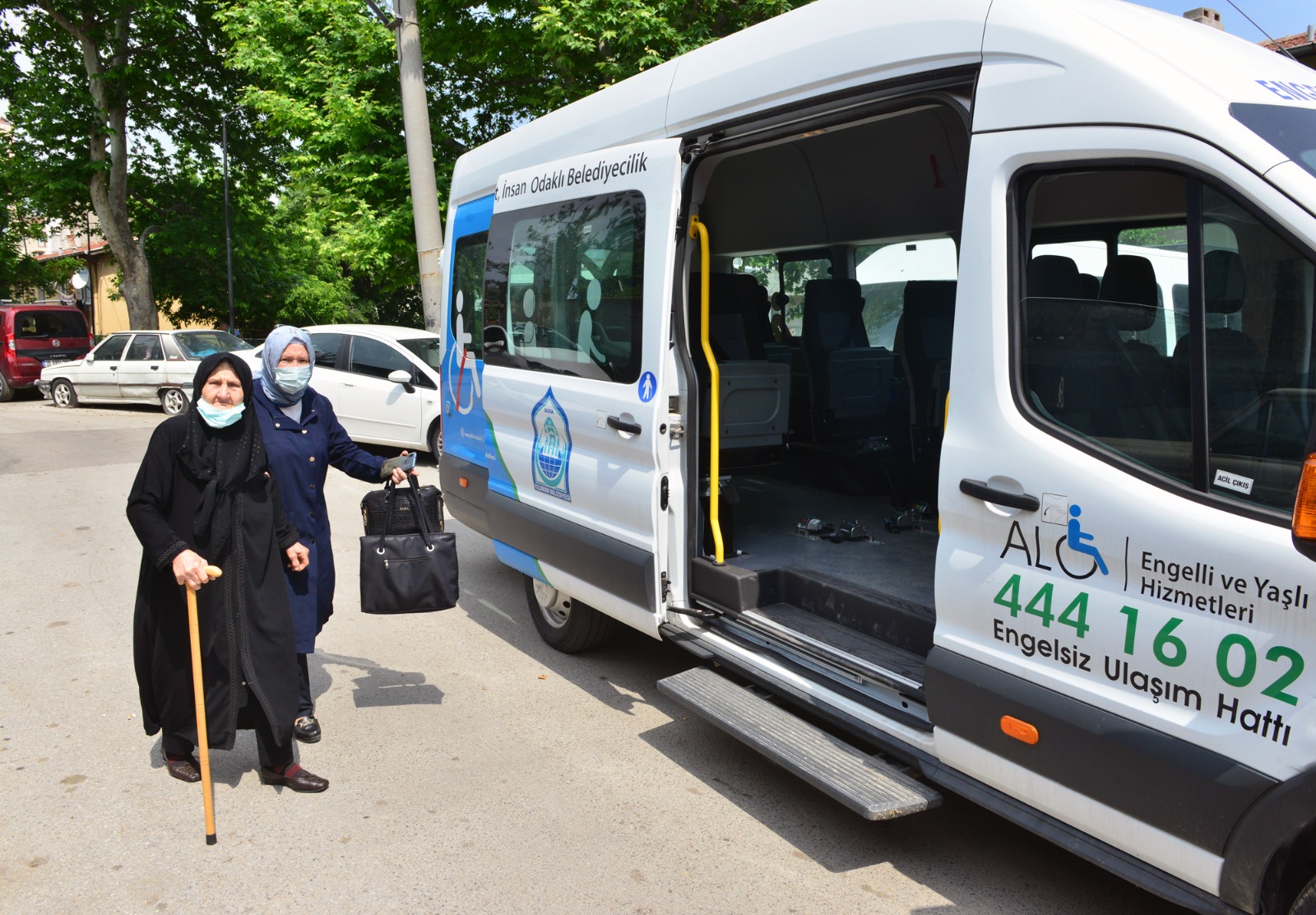 Sosyal belediyecilik alanında örnek projelere imza atan Yıldırım Belediyesi, engelli ve yaşlılara yönelik ‘Engelsiz Nakil Hizmeti’ ile yüzleri güldürmeye devam ediyor. Yıldırım Belediyesi’nin ‘Engelsiz Nakil Hizmeti’ ile engelli ve yaşlı vatandaşlar bulundukları mekânlardan alınarak, sağlık ve kamu kurumlarına ücretsiz taşınıyor. ‘Engelsiz Nakil Hizmeti’nden faydalanmak için Yıldırım Belediyesi Çağrı Merkezi’ni arayan 87 yaşındaki Müyesser Çaptuğ’u, Şükraniye Mahallesi’ndeki evinden alan ekipler, yaşlı kadını Bursa Şehir Hastanesi’ndeki randevusuna ulaştırdı. Yürüme zorluğu çeken Müyesser teyzeye refakat eden ekipler, randevusunun ardından ise yaşlı kadını evine bıraktı. Hayatı kolaylaştıran hizmetlerden dolayı Yıldırım Belediye Başkanı Oktay Yılmaz’a teşekkür eden Çaptuğ, “İhtiyaç duyduğumda evime gelip beni yıkıyorlar, temizlik yapıyorlar, sıcak yemek getiriyorlar. Daha ne yapsınlar. Çok memnunum, Allah razı olsun” diye konuştu.