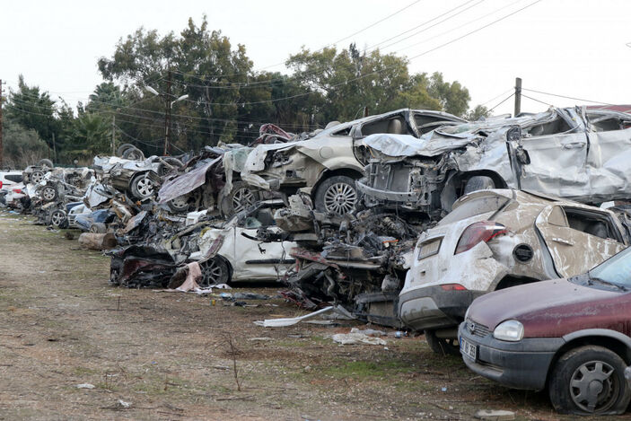 6 Şubat'ta olan 7.6 ve 7.7 büyüklüğündeki depremlerin ardından 20 Şubat'ta 3 dakika arayla Hatay'da olan 6.4'lük ve 5.8'lik depremlerde yıkılan ya da ağır hasar alan binaların enkazı altında kalan çok sayıda araç, kullanılamaz hale geldi.