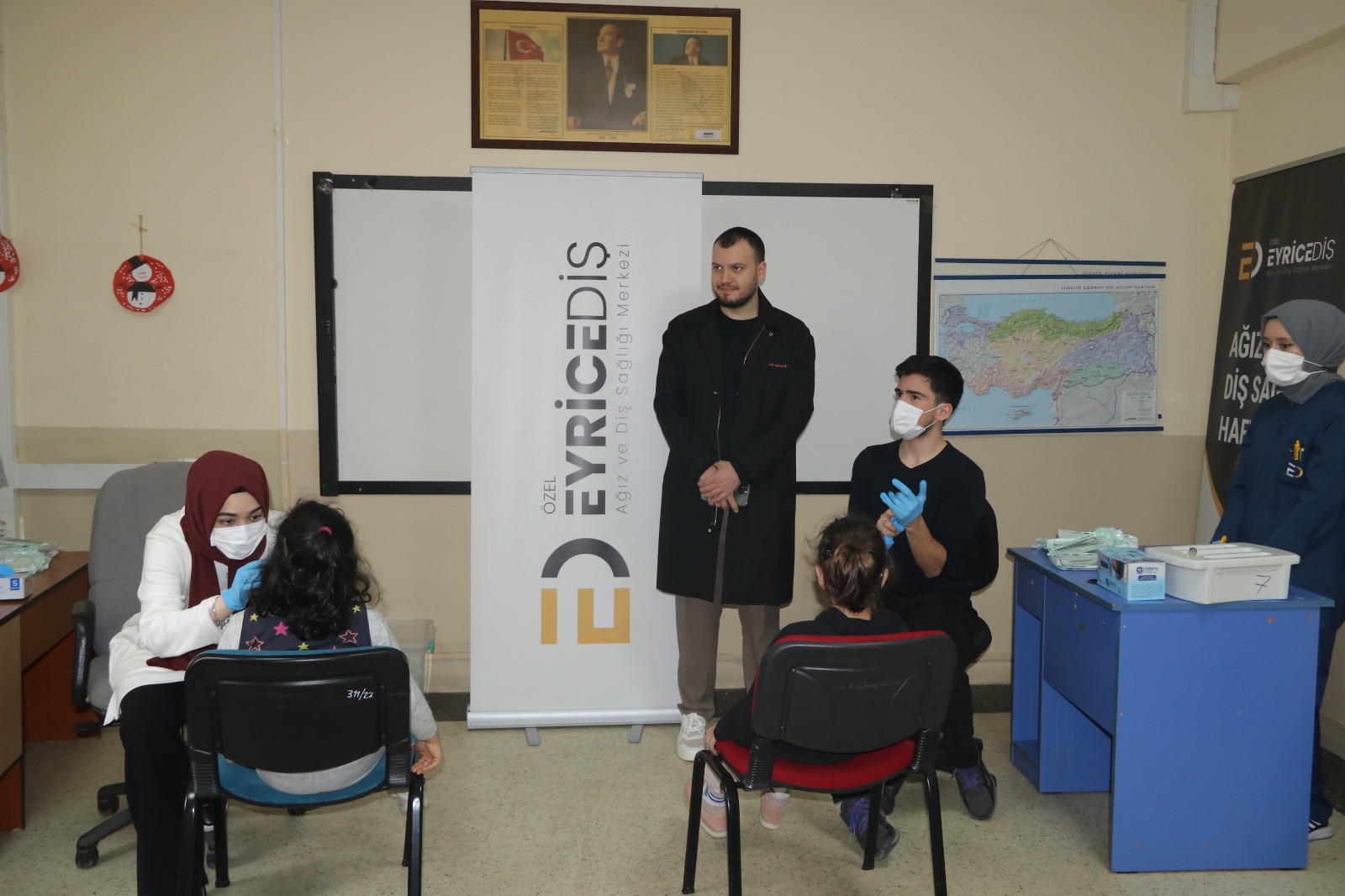 Daha önce ilköğretim okullarını ziyaret ederek öğrencilere diş fırçalama alışkanlığı kazandırmak ve farkındalık oluşturmak için bilgilendirme seminerleri düzenleyen Eyrice ADSM yönetimi, sosyal sorumluluk projeleri kapsamındaki çalışmalarını sürdürüyor.