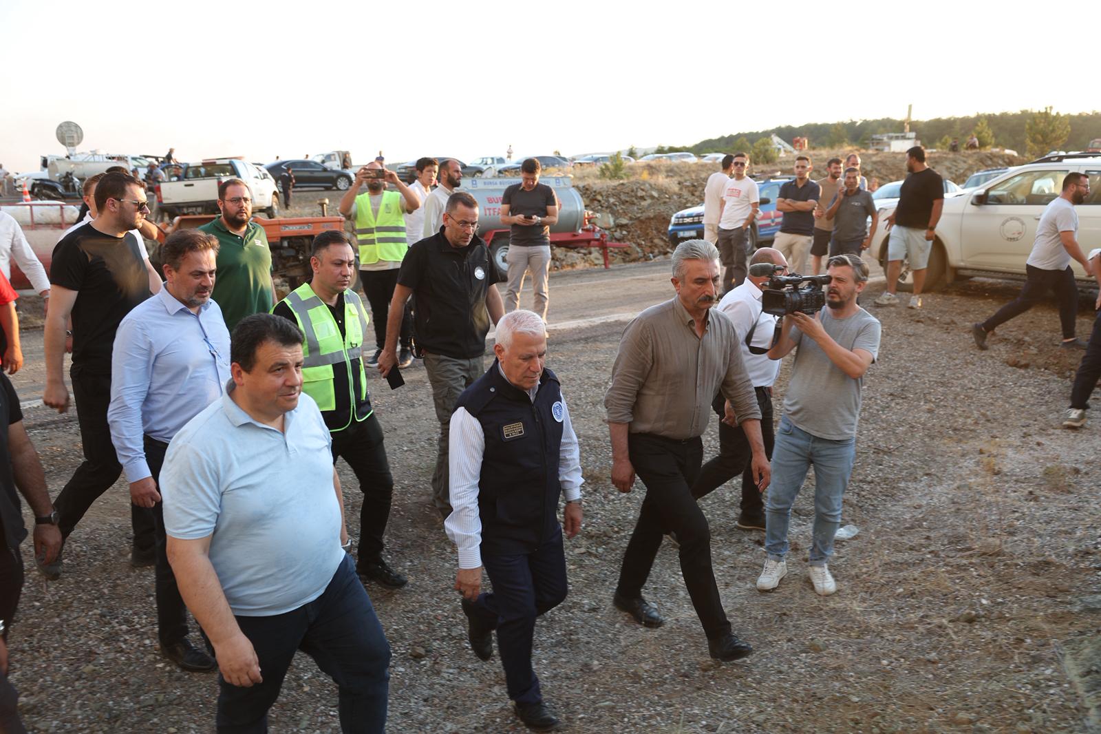 Dün akşam saatlerinde Bursa'nın Orhaneli-Harmancık sınırlarında başlayan ve kısmen kontrol altına alınmış olmasına rağmen, rüzgarın etkisiyle alevler yeniden şiddetlendi. Bursa Büyükşehir Belediye Başkanı Mustafa Bozbey, CHP İl Başkanı Nihat Yeşiltaş ve CHP Bursa Milletvekili Hasan Öztürk ile birlikte Harmancık'a geçerek yangınla mücadele faaliyetlerini yakından izledi. Orhaneli Belediye Başkanı Ali Osman Tayır ve Keles Belediye Başkanı Ali Doğru ile bir araya gelen Başkan Bozbey, en son durum hakkında bilgi alışverişinde bulundu. Ardından AKOM aracına geçerek, drone vasıtasıyla bölgeyi havadan inceleyip bir değerlendirme yaptı.
