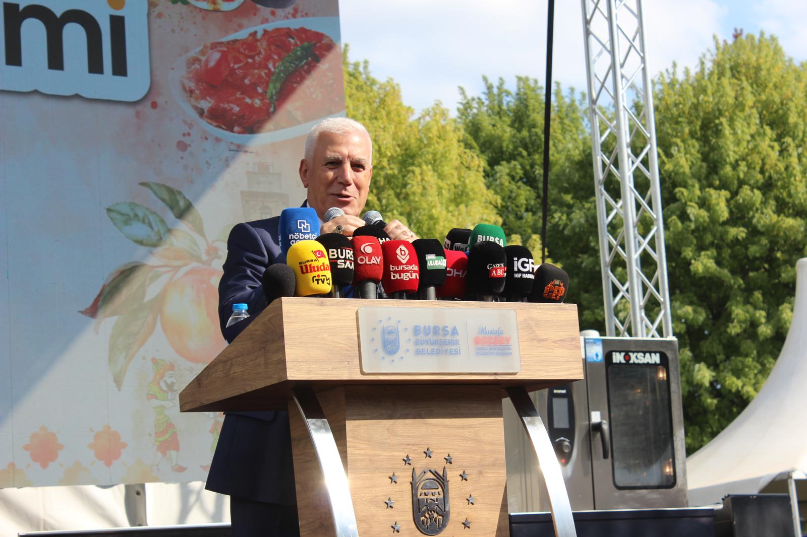 Açılış töreninde konuşan Bursa Büyükşehir Belediye Başkanı Mustafa Bozbey, her yıl büyüyerek kentin vazgeçilmez geleneği haline gelen festivalin, bu yıl 26-27-28 Eylül tarihlerinde Merinos Park’ta düzenlendiğini belirtti. Festivalin yalnızca Türkiye'den değil, dünyanın farklı ülkelerinden misafirleri ağırladığını ifade eden Başkan, "Üç gün boyunca; atölyelerden yarışmalara, tadım etkinliklerinden kültürel gösterilere kadar 100’ün üzerinde etkinlik ile yerelden dünyaya uzanan bir lezzet şölenine dönüşecek," dedi. Bozbey, festivalin kentin gastronomi alanındaki marka değerini yükselteceğini ve yerel işletmelerin görünürlüğünü artıracağını vurguladı.