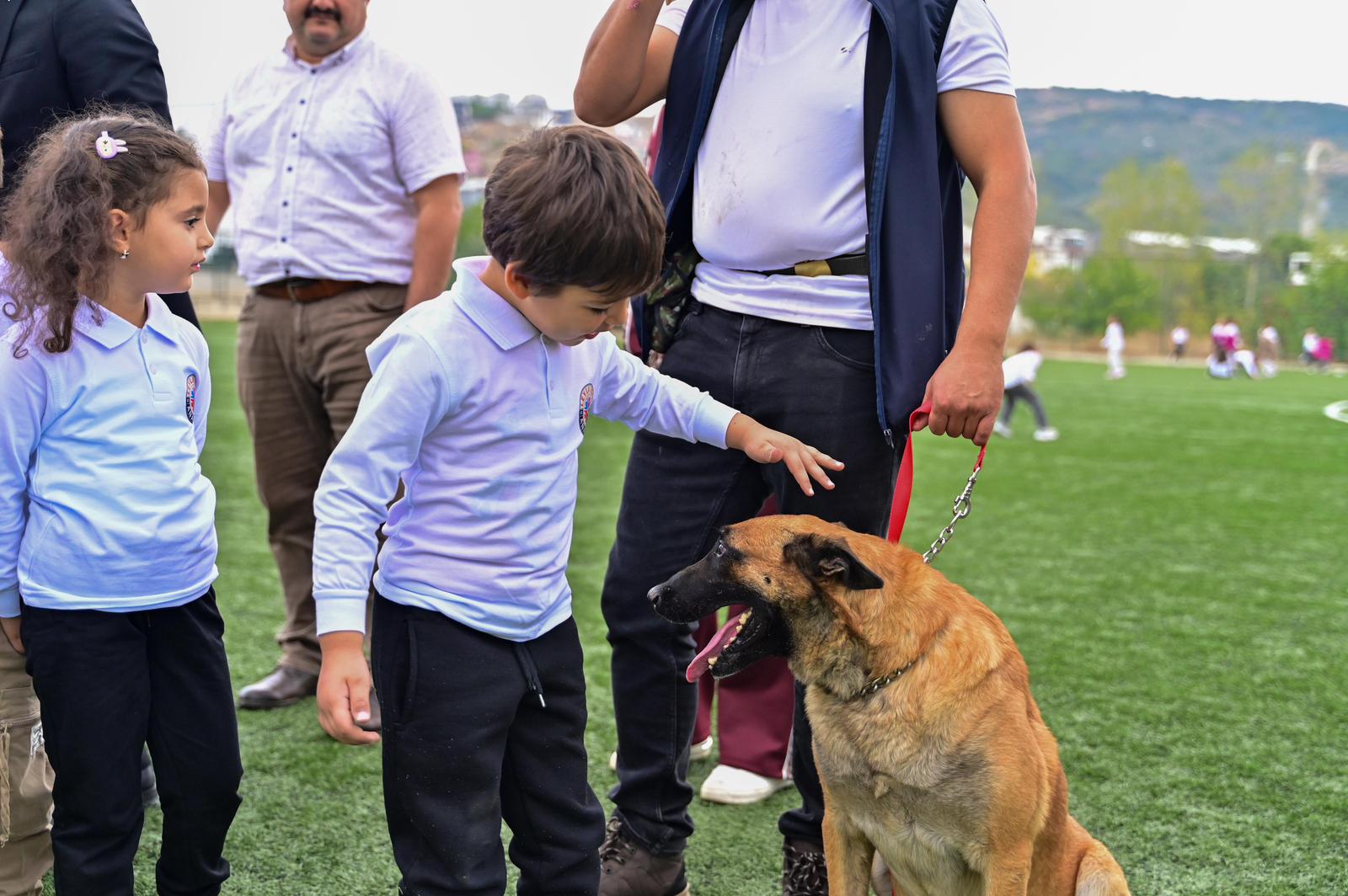 Programın en ilgi çekici anı ise Umurbey Stadyumu’nda gerçekleşti. Belediye eğitmeninin çalıştırdığı köpekler; 5 yaşındaki Alman Kurdu, 2 yaşındaki Belçika Malinois ve 2 aylık Dutch cinsi yavru köpek, temel komutları başarıyla sergileyerek izleyenlerden büyük alkış aldı.