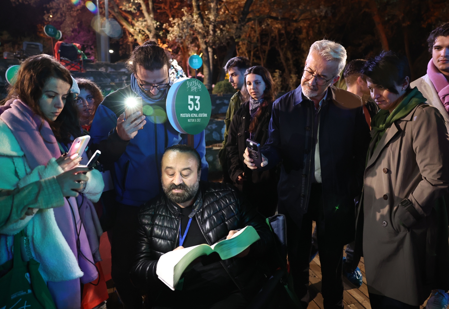 Konuşmaların ardından “yüz yıllık SÖZ” isimli canlı okuma performansı başladı. 100 tiyatro öğrencisi, gecenin geç saatlerine kadar seçilen eserleri sesli okumayı sürdürdü. Etkinliğin son anlarına kadar okuması gerçekleştirilen Mustafa Kemal Atatürk’ün kaleme aldığı Nutuk’un son sayfalarını Başkan Turgay Erdem ve gençler hep birlikte okurken büyük coşku yaşandı. Uzun süren okumaların sonunda sevinç ve heyecan yaşanırken Başkan Turgay Erdem de gençlerle bu anı paylaştı. Büyük bir gurur ve mutluluk yaşadıklarını ifade eden Erdem, etkinlikte performans sergileyen gençlere teşekkür sertifikası verdi.