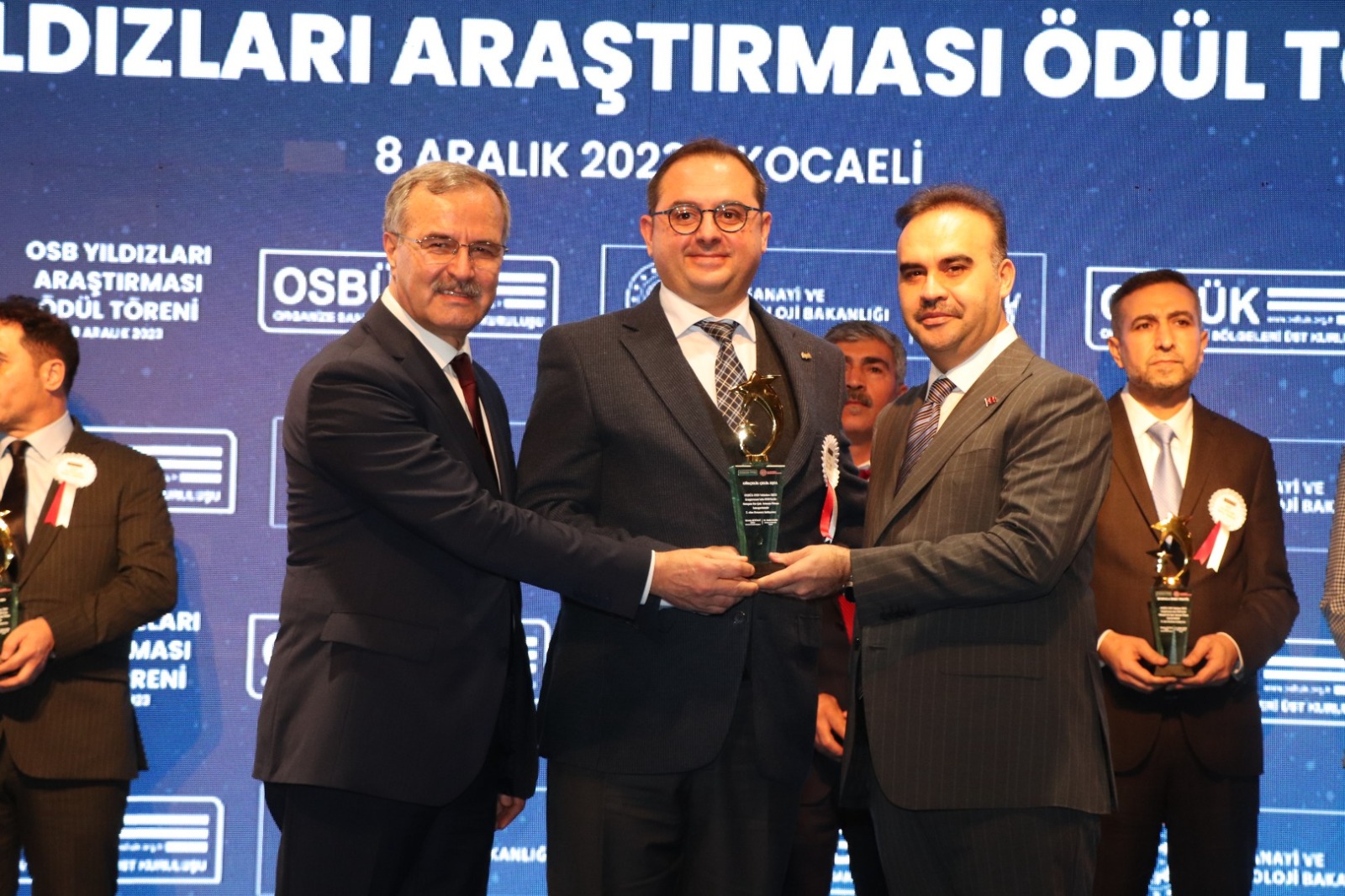 Merkezi Ankara’da bulunan ve Organize Sanayi Bölgeleri Üst Kuruluşu olan OSBÜK’ün her yıl düzenlemiş olduğu “OSB’lerin Yıldızları” ödüllerinde bu yıl Bursa’dan Gökçelik firması ikinci olarak ödülünü Bakan Kacır’ın elinden aldı.