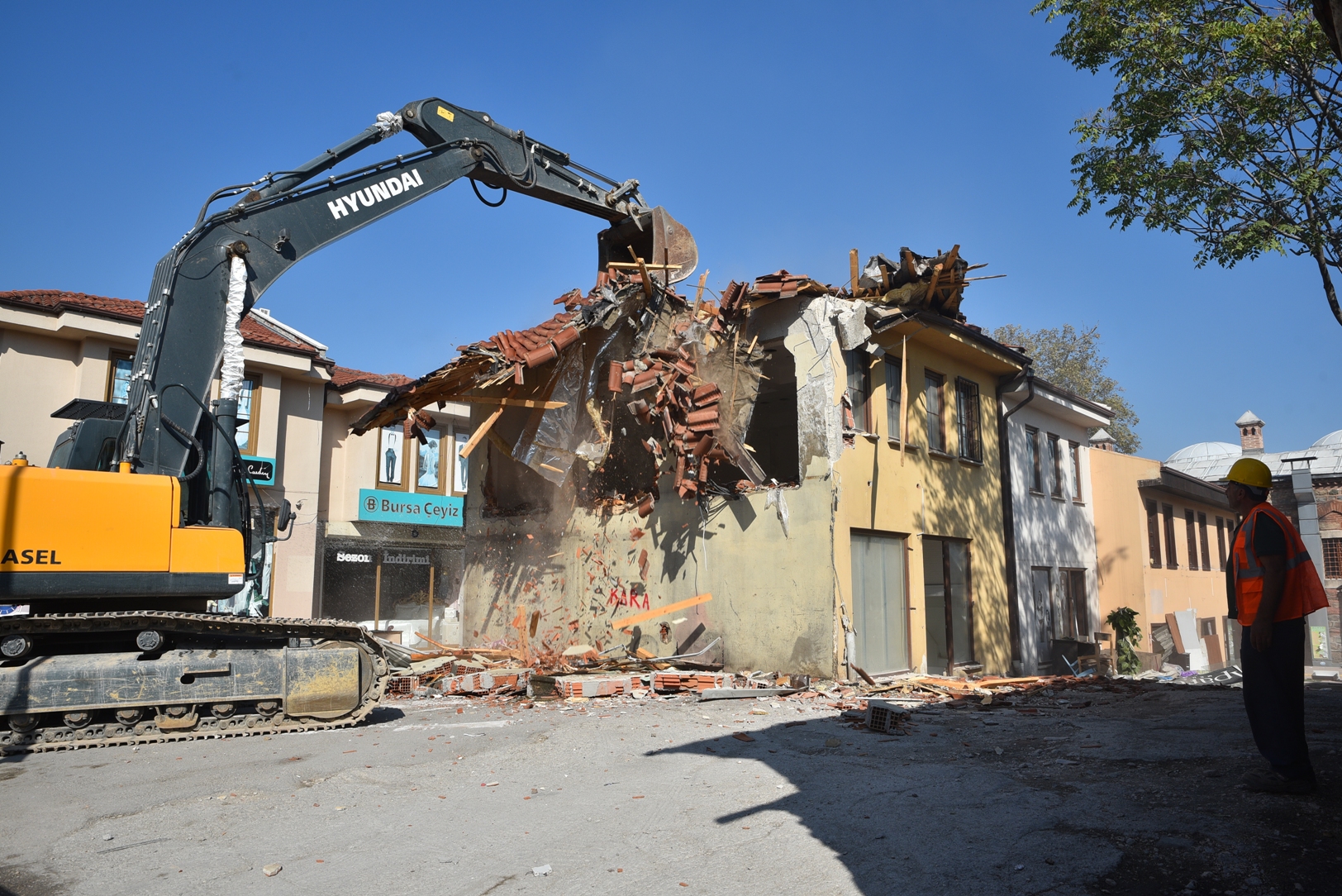 Osmanlı'nın ilk başkenti olan Bursa'da 14. yüzyılda oluşmaya başlayan, 16. yüzyılda han, bedesten ve çarşıların oluşumuyla gelişimini tamamlayan Tarihi Çarşı ve Hanlar Bölgesi’ni eski ihtişamına kavuşturacak proje etap etap ilerliyor. Bursa Büyükşehir Belediyesi’nin, Çevre ve Şehircilik Bakanlığı tarafından da desteklenen projesinde, Kızılay, İşkur, Merkez Bankası binalarının yıkımıyla 600 yıllık Ulu Cami’nin, Cemal Nadir Caddesi üzerinden de görünmesi sağlanmıştı. Ardından Pirinç Han’ın arkasındaki Bursalı Esiri Mehmet Efendi olarak bilinen 40’ıncı Osmanlı şeyhülislamına ait türbenin etrafını saran 15 dükkânın yıkımı da tamamlanmıştı. Daha sonra Pirinç Han’ın arka kısmında bulunan bir bina daha geçtiğimiz aylarda yıkılmıştı. Böylece Tarihi Çarşı ve Hanlar Bölgesi, etrafını çevreleyen binalardan arındırılarak yeniden gün yüzüne çıkmaya başladı.