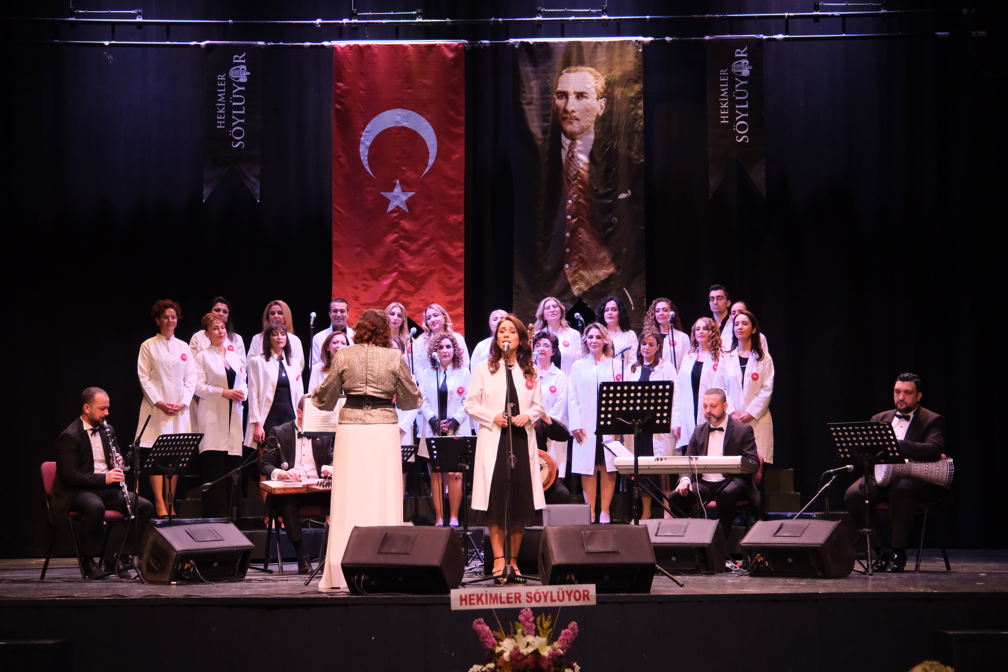 Bursa Büyükşehir Belediyesi tarafından Bakyapı İnşaat, Nev Sağlık Grubu, Özel Hayat Hastanesi ve İskender İskenderoğlu’nun destekleriyle 14 Mart Tıp Bayramı Haftası münasebetiyle düzenlenen ‘Hekimler Söylüyor’ konseri, Tayyare Kültür Merkezi’nde yapıldı. Beyaz önlükleriyle sahne alan hekimler, sanat güneşi Zeki Müren’in eserlerini solo ve koro halinde seslendirdi. Proje koordinatörlüğünü Dr. Özlem Kaya’nın üstlendiği konserin koro şefliğini ise Nazire Savran yaptı. Türkiye’nin dört bir yanından Bursa’ya gelen müziğe gönül vermiş hekimler, performanslarıyla programa ilgi gösteren sanatseverlere unutulmaz bir akşam yaşattı.