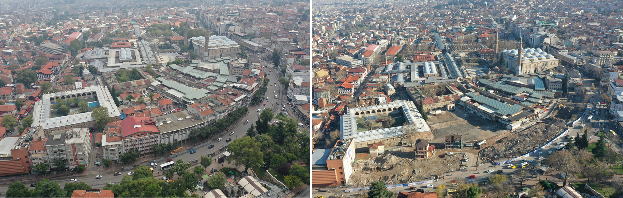 Büyükşehir Belediyesi’nin ‘kentin geleceğine damga vuracak’ Tarihi Çarşı ve Hanlar Bölgesi Çarşıbaşı Kentsel Tasarım Projesi kapsamında 37 binanın yıkımı tamamlandı. Böylelikle Cemal Nadir Caddesi ile tarihi hanlar arasındaki tüm engeller ortadan kalkmış oldu.