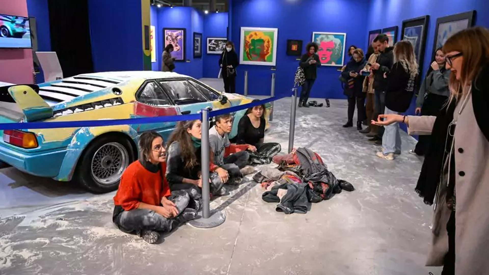 'Last Generation' grubundan dört aktivist, Warhol'un retrospektifine ev sahipliği yapan Fabbrica del Vapore kültür merkezinde sergilenen renkli 1979 model BMW M1 aracının üzerine sekiz kilo un döktü.