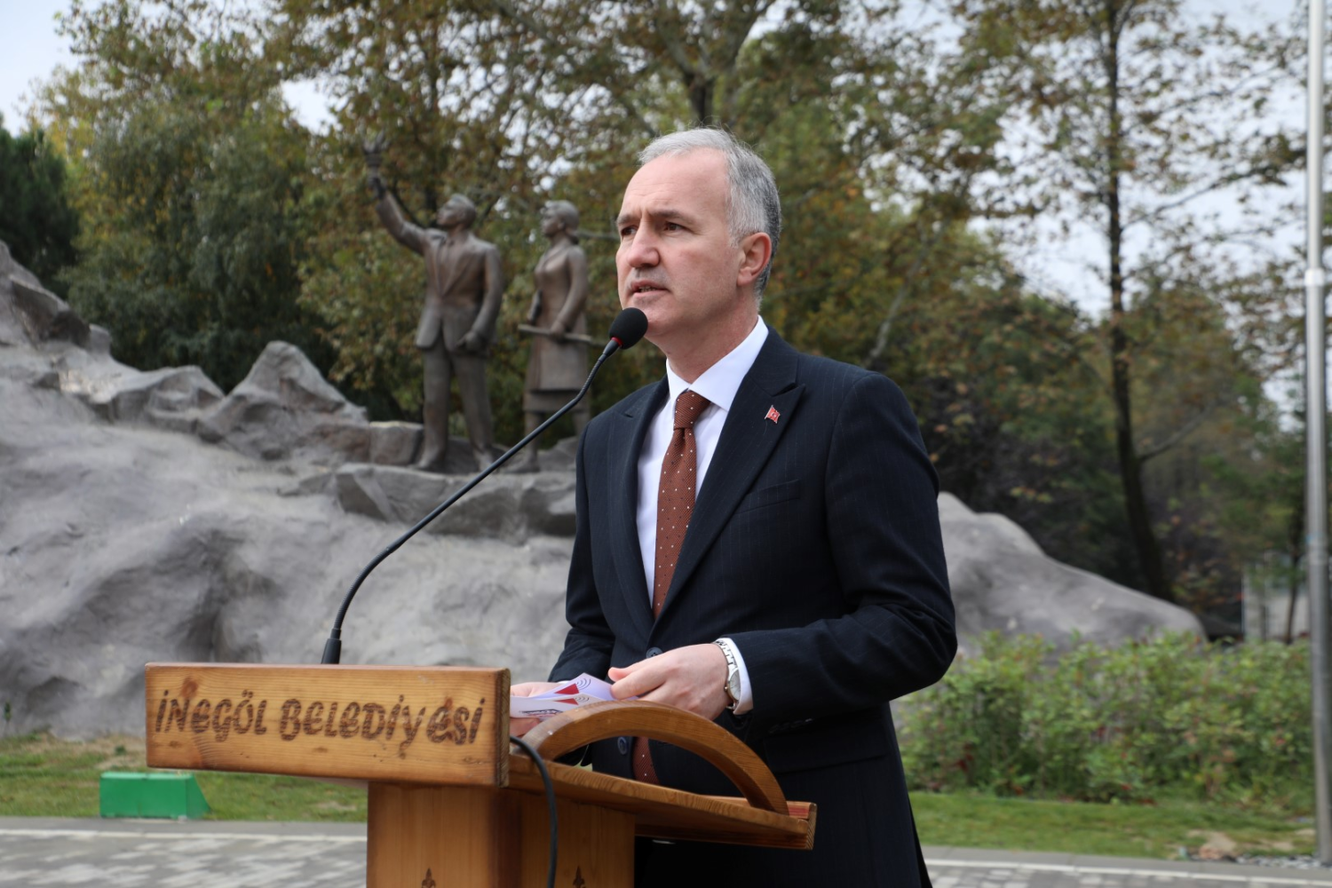 Saygı duruşu ve İstiklal Marşı'nın okunmasıyla başlayan törende, Muhtarlar Derneği Başkanı Oktay Garip tarafından anıta çelenk bırakıldı. Ardından günün anlam ve önemine dair bir konuşma yapan Garip, "Muhtarlık kurumu, 1829'dan bu yana bu topraklarda milletimize hizmet etmeyi sürdürmektedir. Hem genel hem de yerel sorunların ilgili mercilere iletilmesinde köprü vazifesi gören muhtarlık müessesesi, Osmanlı'dan günümüze ulaşan kıymetli bir yerel yönetim birimidir. Yerel yönetimlerin temel direği olan köy ve mahalle muhtarlıklarımız, vatandaşlarımızın devlete ve hizmetlere açılan ilk kapısıdır. Muhtarlarımız, köylerimizde ve mahallelerimizde fedakarca çalışarak devletimizin gören gözü, duyan kulağı olmuştur. Her geçen gün gelişen bu güzel şehirde, milletimizden aldığımız güçle 116 muhtarımızla görevimizi icra etmekte, milletimizin kederiyle hüzünlenip, sevinciyle coşmaktayız. Muhtar, siyasetten bağımsız, tarafsız, kişiliğiyle toplumda saygınlık kazanmış, halkın teveccühüyle seçilmiş en önemli kanaat önderidir. Yerel yönetimin kılcal damarı ve demokrasinin temel taşıdır. Bu büyük camianın bir parçası olmaktan şeref duyuyoruz. Türkiye Cumhuriyeti'nin kurucusu Gazi Mustafa Kemal Atatürk'ün dediği gibi; muhtar, demokrasinin temel taşıdır" ifadelerini kullandı.