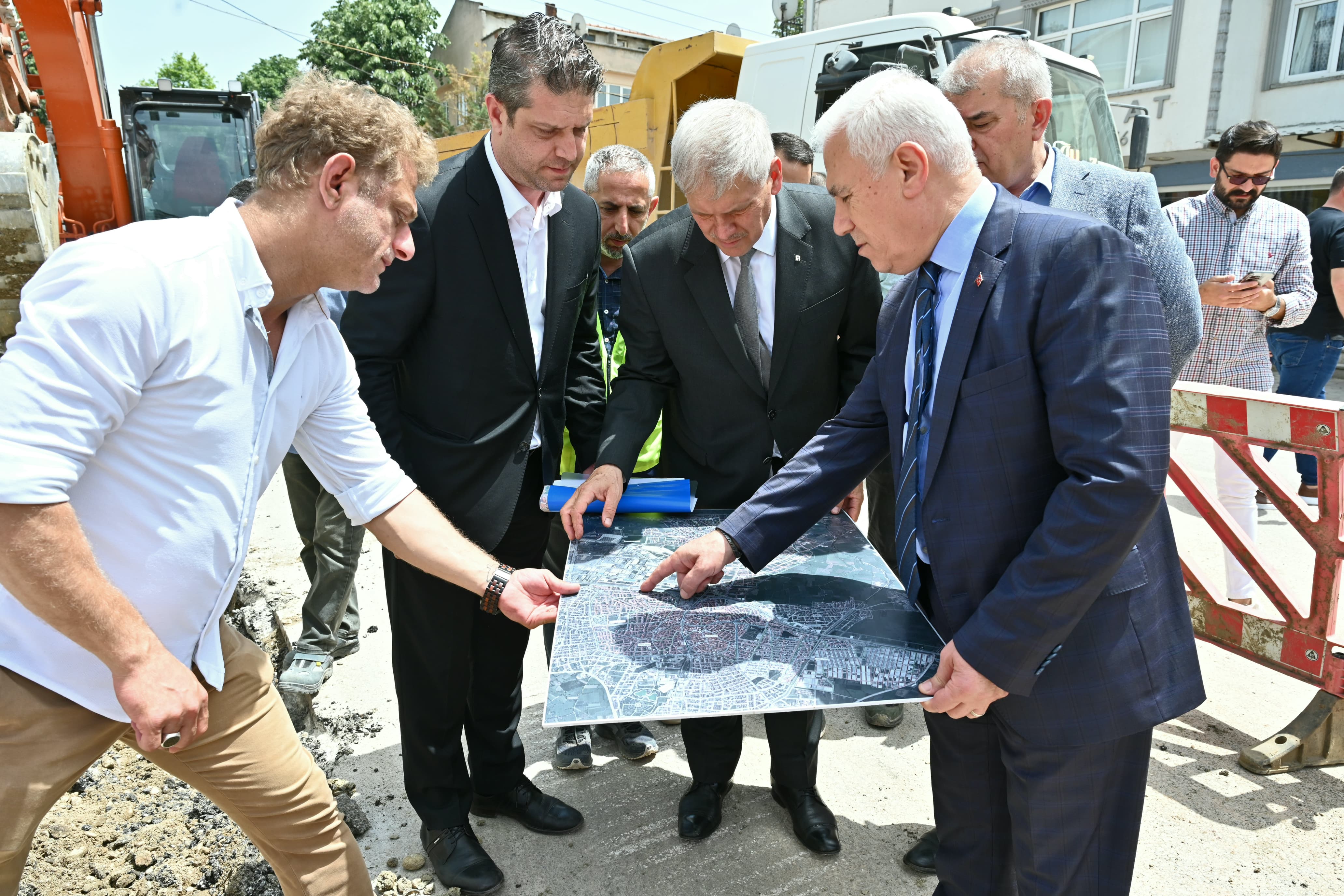 Bursa Büyükşehir Belediye Başkanı Mustafa Bozbey, İnegöl ilçesindeki çalışmaları BUSKİ Genel Müdürü Güngör Gülenç ve yetkililerle birlikte yerinde inceleyerek bilgi aldı. İnegöl’de eskiyen içme suyu hatlarının yoğun çalışma süreciyle yenilendiğini söyleyen Başkan Mustafa Bozbey, sahadaki personelin büyük özverisiyle yatırımların hızla sürdüğünü belirtti. Önümüzdeki yılın sonuna kadar İnegöl’de eski hatların tamamen değiştirilmiş olacağını ifade eden Başkan Bozbey, “Buradaki kayıp kaçak oranının da en aza indirilmesiyle hem BUSKİ’nin hem de vatandaşlarımızın kazançlı olacağı bir döneme girmiş olacağız. Altyapı yatırımlarını önemsiyoruz. İnegöl’de altyapıya yaklaşık 14 milyon Euro civarında bir yatırım yapmış olacağız. Bu yatırımın izlenmesi, takip edilmesi son derece önemli. Tekniğine uygun ve zamanı da iyi kullanarak hatların bir an önce değiştirilmesini planlıyoruz. İnegöl halkımızın çeşmeden akan suyu rahatlıkla ve güvenle içebileceği ortamı oluşturmak istiyoruz. Bu hizmetlerle İnegöl’de huzurlu ve güvenli bir yaşam hedefliyoruz. Sahada emek veren, işlerini dikkatle yapan tüm arkadaşlara teşekkür ediyorum. Hayırlı olsun” dedi.