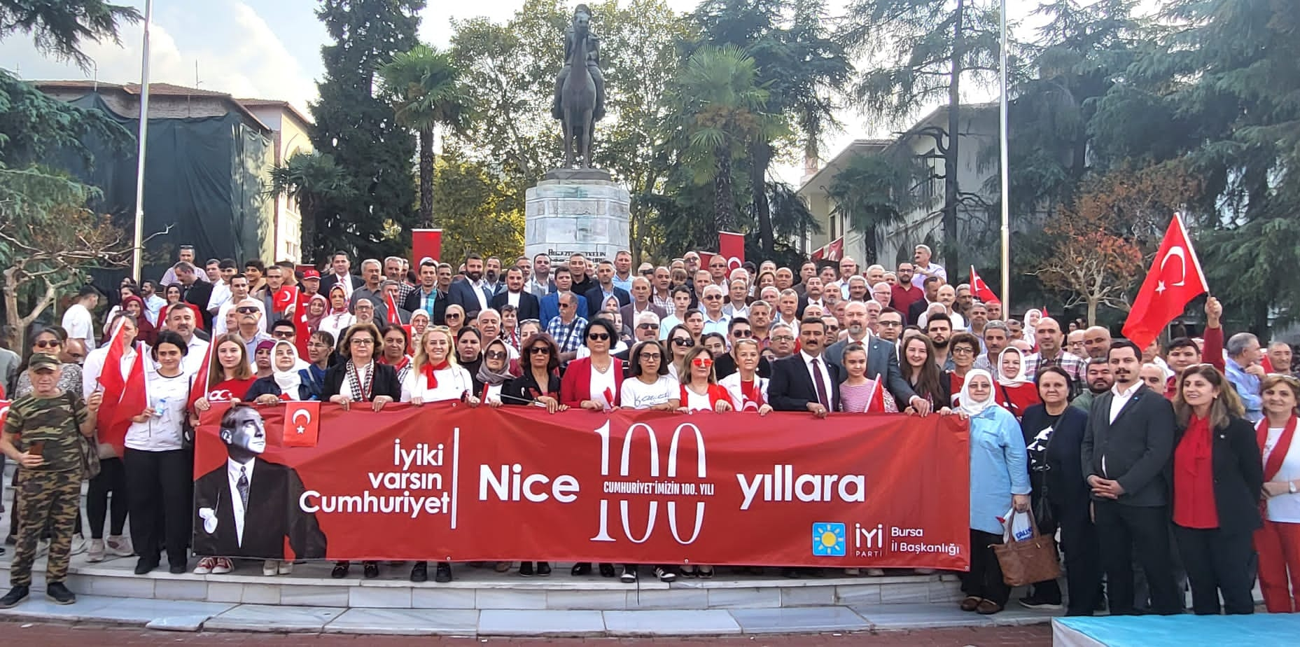 İYİ Parti Bursa İl Teşkilatı, Cumhuriyetin 100. Yılını, Orhangazi Parkı’ndan başlayıp Heykel Atatürk Anıtı’nda son bulan yürüyüş ve 100 metrelik bayrak açarak kutladı.