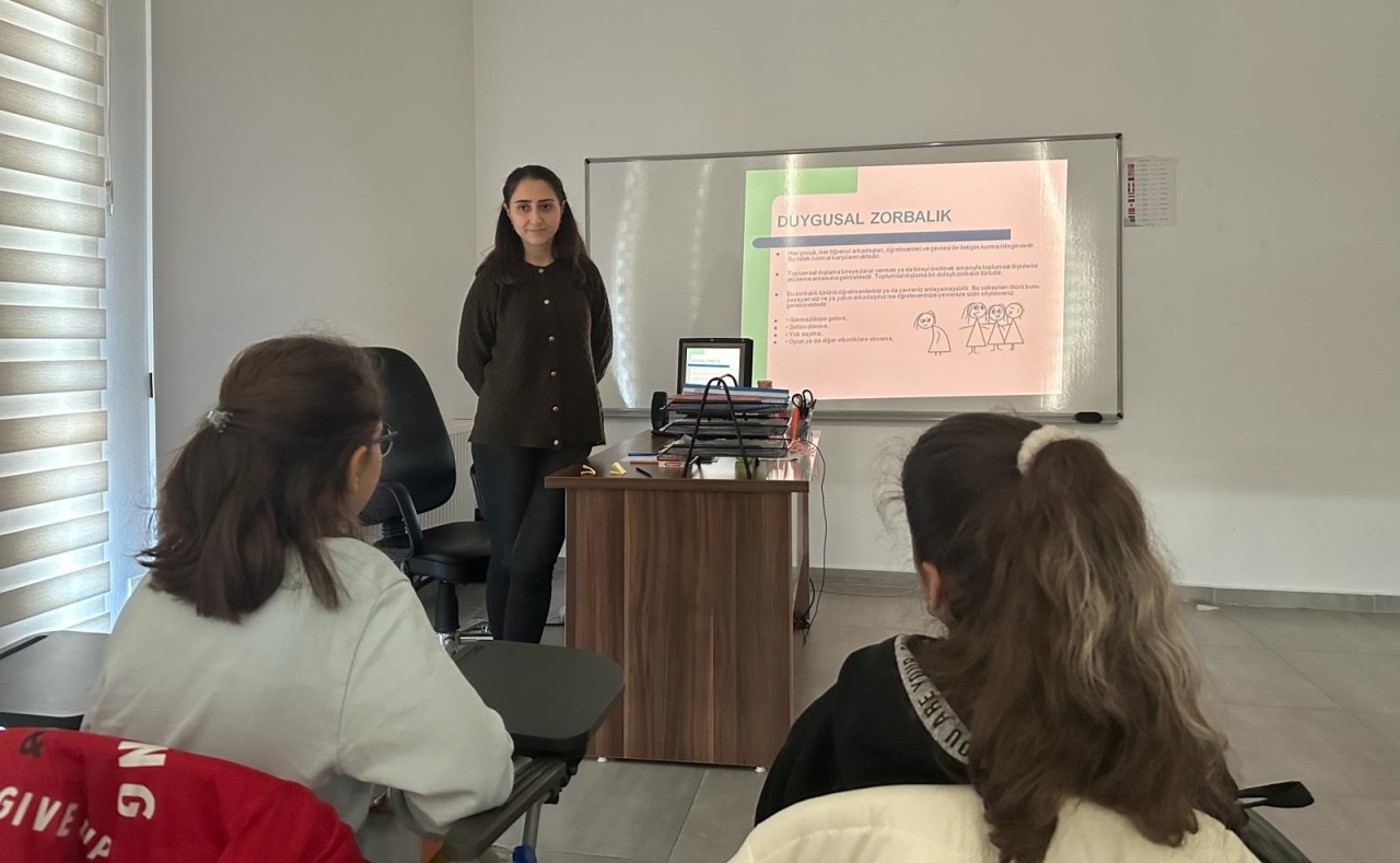Akran zorbalığı ile ilgili seminerde; zorbalığın tanımı ve çeşitlerinin yanı sıra, ‘Zorbalığa maruz kaldığımız durumlarda kimlerden yardım istemeliyiz?’, ‘Böyle durumlarda ne yapmalıyız?’, ‘Zorbalık en çok nerelerde görülür?’ konuları işlendi.