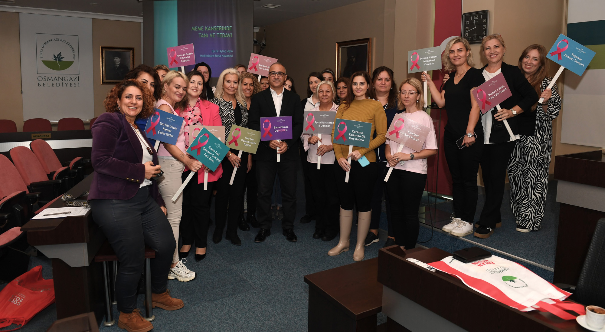 Osmangazi Belediyesi ‘Meme Kanseri Bilinçlendirme ve Farkındalık Ayı’ etkinlikleri kapsamında, kadın personele yönelik ‘Meme Kanseri Bilinçlendirme Semineri’ düzenledi. Genel Cerrahi Uzmanı Op. Dr. Aytaç Sayın, meme kanseri ve erken teşhis konularında kadın personele hayati bilgiler verdi.