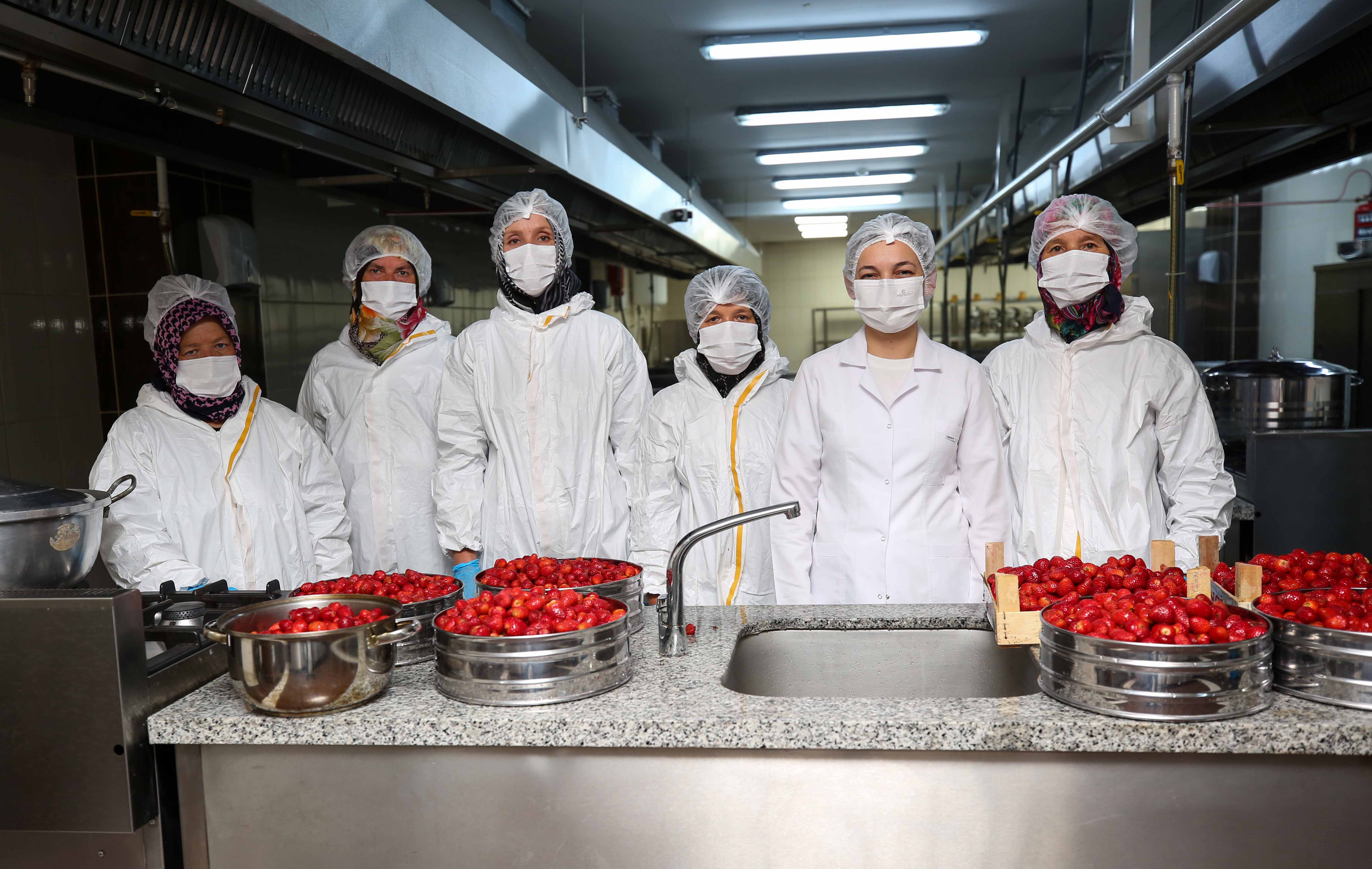 Nilüfer Belediyesi, vatandaşların sağlıklı ve doğal ürünlere ulaşabilmeleri için Nilüfer Dernekler Yerleşkesi mutfağının kapılarını üreten kadın dernekleri için açtı. NİLKOOP’un Atlas’taki üreticilerden satın aldığı çilekler, Atlas Köyü Kadın Derneği üyelerinin maharetli ellerinde lezzetli reçellere dönüşmeye başladı.