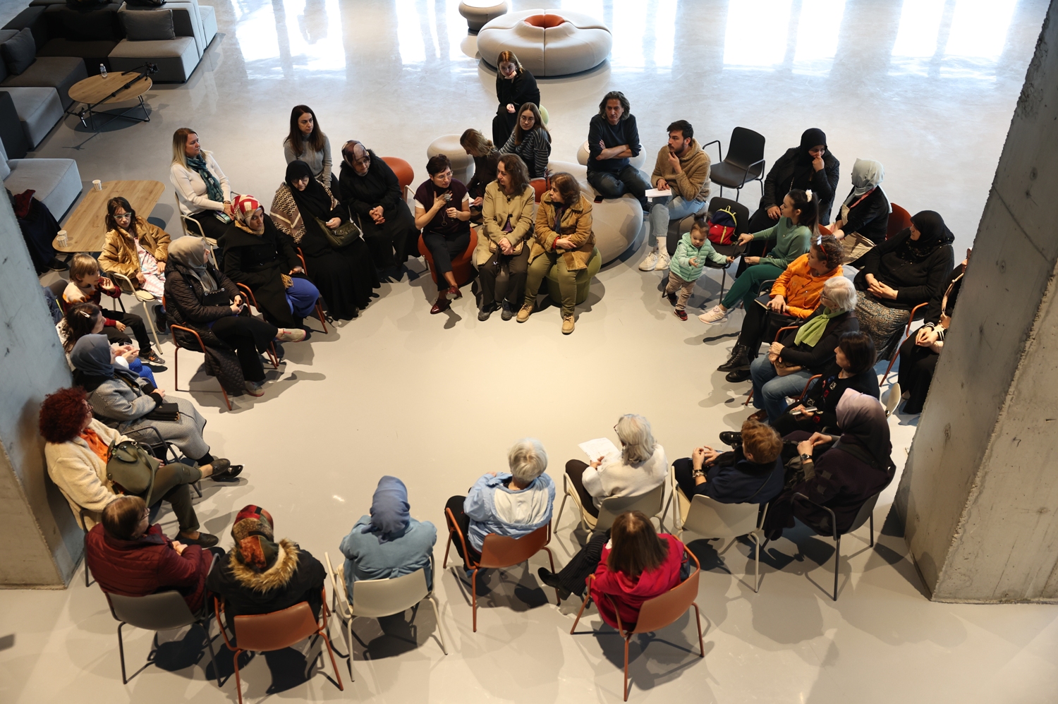 Beşevler ve Konak Mahallesi’ndeki kadınlar, Pancar Deposu’nda düzenlenen fikir paylaşımı toplantısında bir araya geldi. Buluşmada kadınlar önce Pancar Deposu’nda yapılmasını istedikleri çalışmalarla ilgili önerilerini sundu, ardından aşçı Gabriel Castellana’nın yaptığı İtalyan usulü yemeklerin tadına baktı.