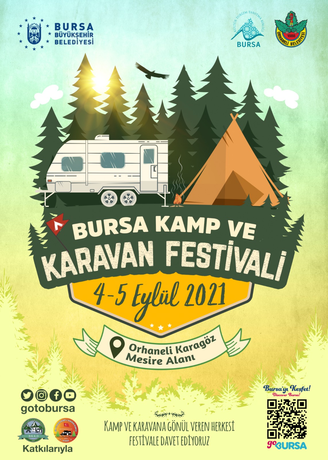 Kamp ve karavan tutkunları 4-5 Eylül 2021 tarihlerinde Bursa’da bir araya geliyor. Bursa Kültür Turizm ve Tanıtma Birliği’nin planlaması ve Bursa Büyükşehir Belediyesi ile Orhaneli Belediyesi’nin katkılarıyla düzenlenecek Bursa Kamp ve Karavan Festivali Orhaneli Karagöz Mesire Alanı’nda gerçekleştirilecek.