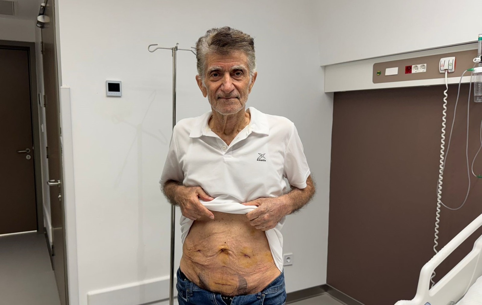 Yaklaşık üç ay evvel karın bölgesinde tespit edilen bir kitle nedeniyle hastaneye başvuran 75 yaşındaki Nadir Telli'nin yapılan detaylı incelemelerinde, kalın bağırsağının son bölümünde bir tümörün yanı sıra karaciğerinde de çok sayıda metastatik odak saptandı.